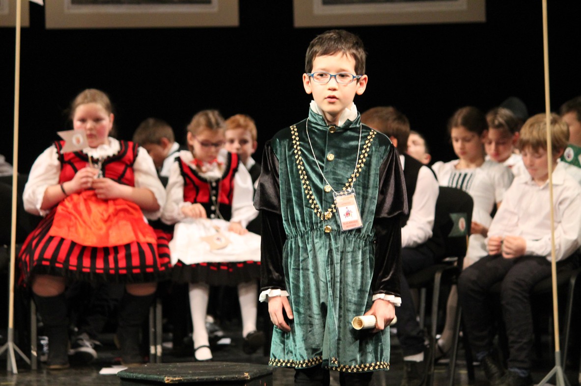 Bárdosi Ilona nyugalmazott tanítónőtől, a regemondó verseny megálmodójától, tiszteletbeli elnökétől az ünnepélyes eredményhirdetés előtt.