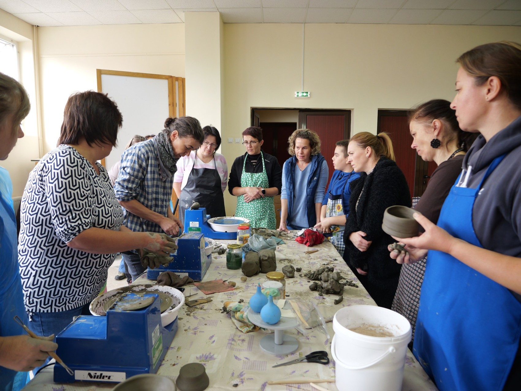 A szovátai Bernády Közművelődési Egylet A nonformális oktatás kézműves tevékenységek által című projektjét a Szovátai Népi Játszóház mint az egylet tagszervezete valósítja meg. Ez a projekt a fazekasmesterség elsajátítását, a hagyományos népi mesterség visszatanítását tűzte ki célul pedagógusok, gyerekek, fiatalok számára, illetve a megfelelő eszközök beszerzését, egy fazekasműhely létrehozását, berendezését. A szükséges eszközök (korongozógépek, megmunkáláshoz szükséges eszközök, elektromos kerámiaégető kemence, fogyóanyagok) beszerzését követően már szerveztek egy szakmai képzést pedagógusok számára, akik megismerkedhettek a kézművestechnikával, hogy a továbbiakban a tanultakat átadhassák a gyerekeknek, érdeklődőknek. Az október végi, Szász Judit kézműves vezette képzés betekintést nyújtott a megmunkálási folyamat nem egyszerű fortélyaiba, amelynek során egyedi alkotások, kisebb kerámiaedények készültek. A pedagógusok képzését követően már egy gyerekfoglalkozásra is sor került, a Játszóház önkéntes pedagógusai pedig további kézműves tevékenységeket terveznek a gyerekek számára, hogy ők is megélhessék az alkotás örömét.