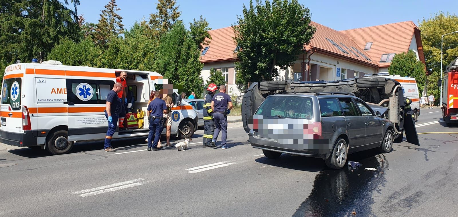 A marosvásárhelyi tűzoltókat röviddel ez után, 14 óra körül a marosvásárhelyi Gheorghe Marinescu utcába riasztották, ahol felborult egy személyautó, és egy személy enyhe sérüléseket szenvedett.
