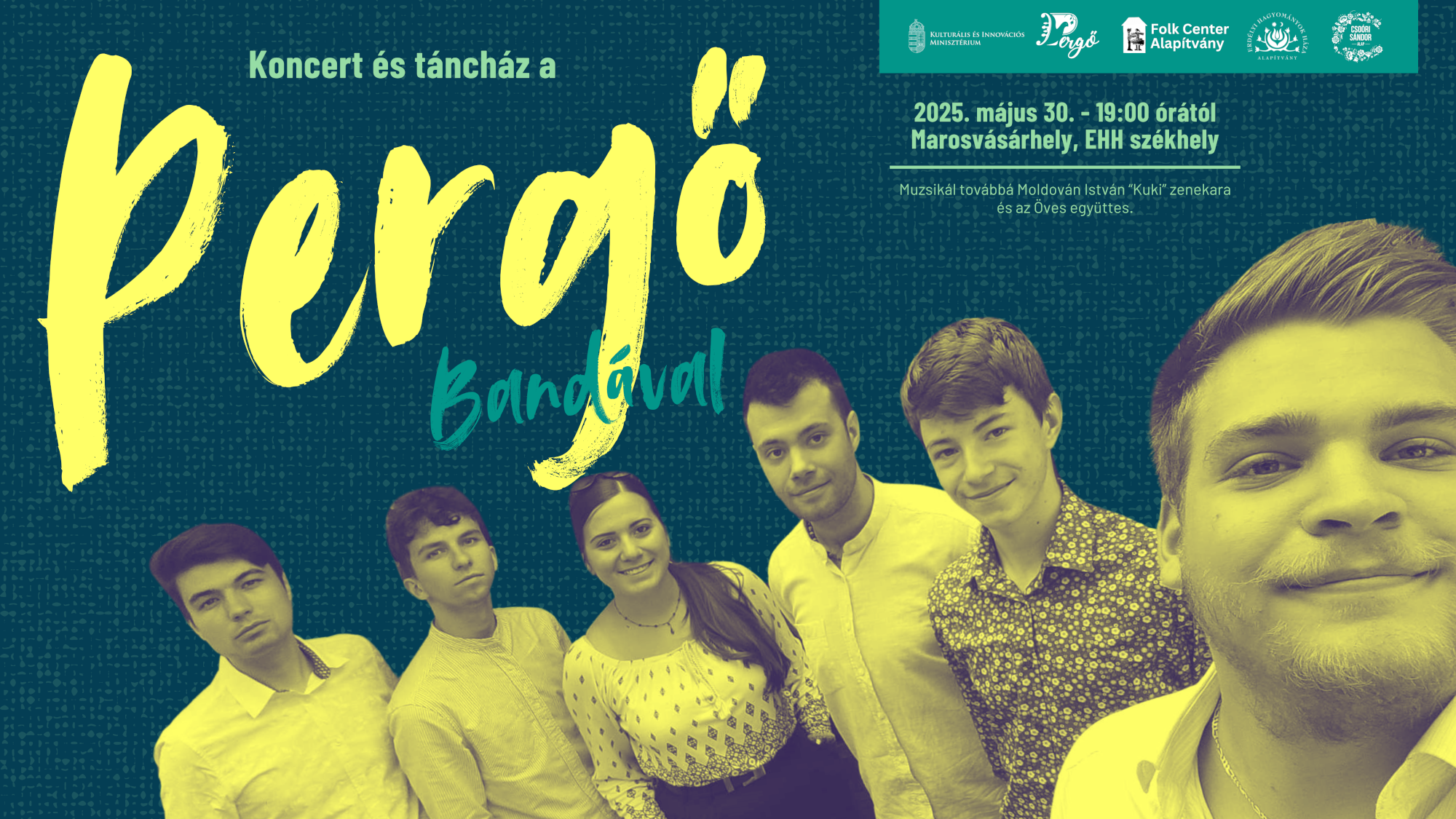 Május 30-án, pénteken este 7 órától az Erdélyi Hagyományok Háza Alapítvány marosvásárhelyi székhelyén (Sáros utca 1. szám) koncertre és évadzáró táncházra kerül sor a Pergő zenekarral.