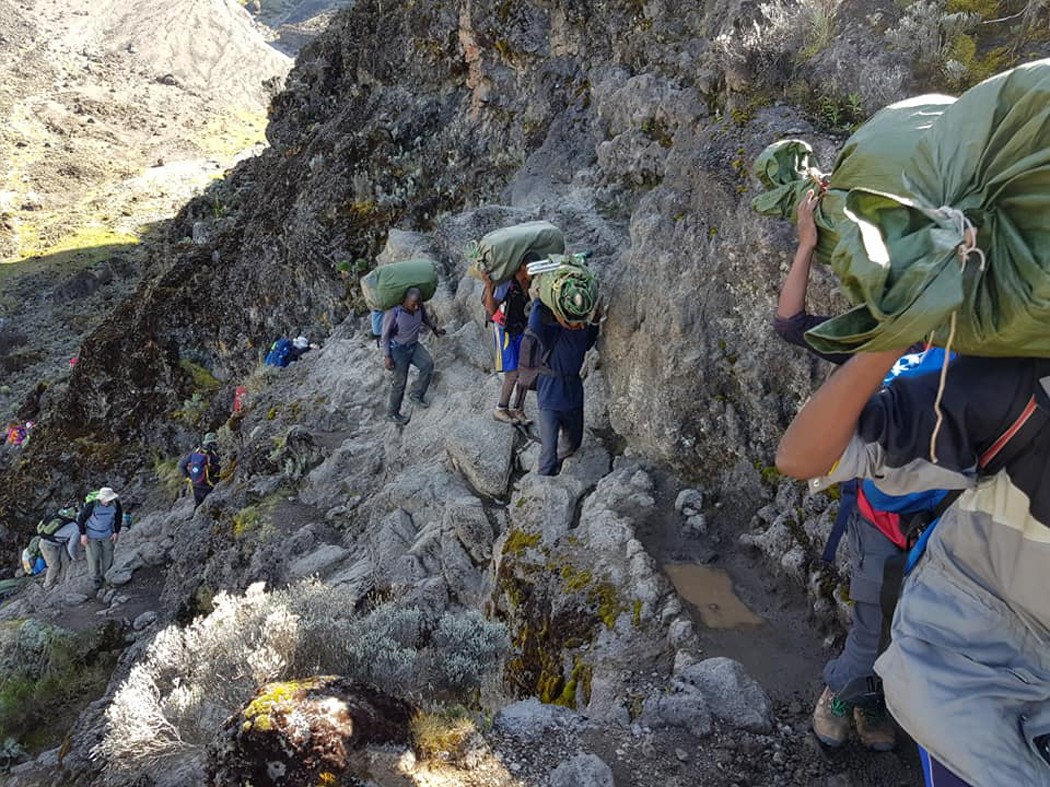 Egyéni vállalkozókat nem is engednek a hegyre. Ez így van rendjén. Az oxigénhiányos, ritka levegő az edzett szervezetet is próbára teszi. S míg a Himalájában több hét is az alpinisták rendelkezésére áll az akklimatizálódásra, a Kilimandzsárót – a céggel kötött szerződés alapján – egy hét alatt kell megjárni. Ahogyan a résztvevők mesélték, ez jó is meg rossz is egyben. Jó, mert a szervezők nagyon gondoskodnak a túrázókról, rossz talán azért, mert ilyen helyen (az alacsonyabb régiókban) szívesen elidőzne többet is a több ezer kilométerről érkező európai ember. – Jólesett, ahogyan fogadtak, gondoskodtak rólunk, biztonságban éreztük magunkat, s ez mindennél fontosabb – mondta utólag Kovács Róbert, az expedíció vezetője. A csapatot autóbusz várta a nairobi repülőtéren, ezt követően is mindenben segítették őket. Arushában, a nemzeti parkban levő kiindulópontnál teljes ellátás volt, azután 47 teherhordó állt a rendelkezésükre, akik az ellátáshoz szükséges teljes felszerelést (sátrak, élelmiszer, tábori konyha) felcipelték és levitték a hegyről. A kijelölt útvonal – a magashegyi túrák viszonylatában – közepes nehézségűnek minősül. A nehézséget az jelenti, hogy míg a hegy lábánál 30 Celsius-fokos hőmérsékletben, majdnem 90%-os páratartamú levegőben, dzsungelben kell menetelni, addig, ahogy a magasabb régiókba jutnak, a levegő ritkulásával csökken a hőmérséklet. A csúcson szép időben is mínusz 10 fok alatt van, és a kitett hegyen állandó a szél, ami a hidegérzetet fokozza. A teherhordók nélkül nem lehet fel- és lejutni a hegyre/-ről. Sem a Himalájában, sem a Kilimandzsárón.
