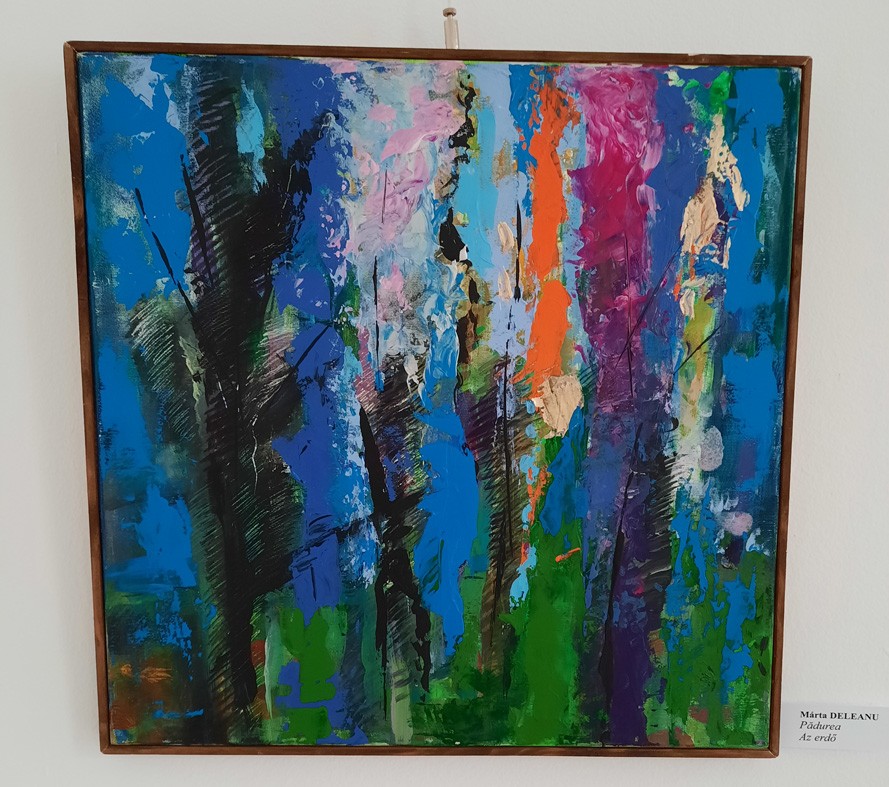Deleanu Márta szintén kitartó táborozó. Makfalván is, a Maros Mezőségi Művésztelepen is, Zsobokon is régóta törzstag. Sokfelé az ilyen vándorkiállításoknak köszönhetően ismerték meg munkásságát. Néhány éve viszont már meg is lepi közönségét. Grafikus énje, az utazási emlékeit, egzotikus élményeit realisztikus megközelítésben, mediterrán színvilágban újraálmodó piktúrája háttérbe vonult, egy ideje a kékek birodalmába vetette bele magát. Formát bontott, bátor, lendületes ecsetkezeléssel tölti ki a vásznat. Egymást követik pályáján a derűs kék rapszódiák. Ő most így látja a világot. Vagy ilyennek akarja láttatni? Az is lehetséges, de, mint vallja, ez a látszólagos szabad szárnyalás nagyobb kihívás számára, mint a korábbi időszaka. Merészsége persze a színhasználatban is megnyilatkozik, a nagy kékségbe a vöröst is beiktatja, kékben ölt testet az erdő is, kékből üzen Atlantisz is, számára manapság ez a meghatározó, ez Az élet vize – az Aqua Vitae.