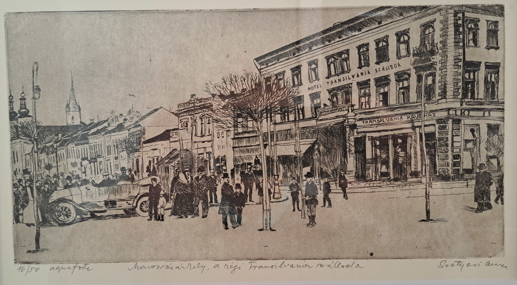 Marosvásárhely, a régi Transilvania szálloda – Szotyori Anna grafikája