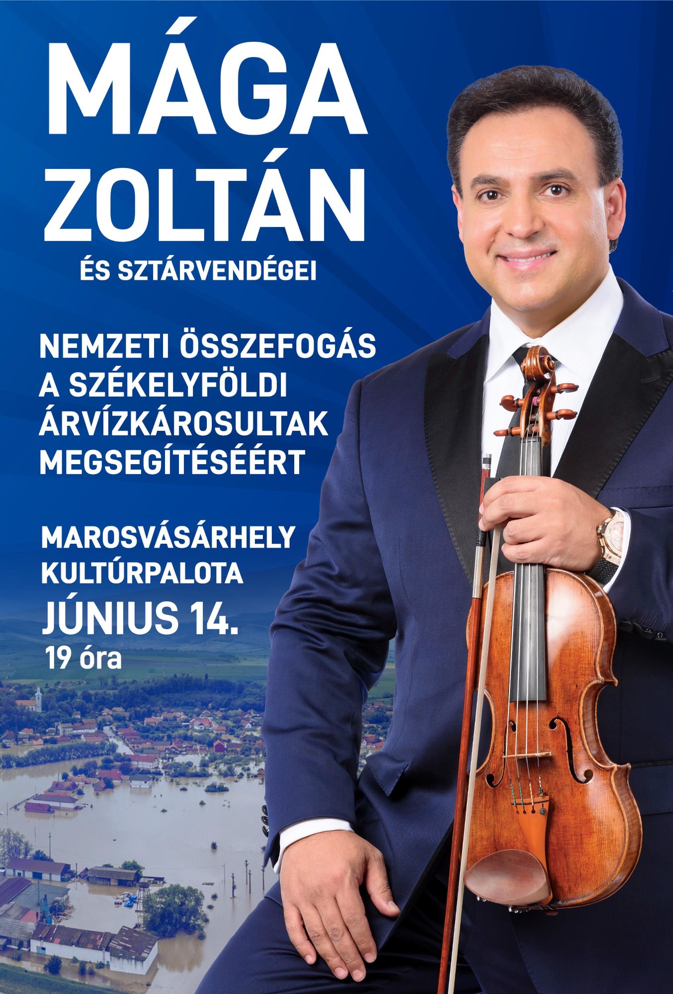Június 14-én, szombaton 19 órától jótékonysági koncertre várják az érdeklődőket a marosvásárhelyi Kultúrpalota nagytermébe, ahol Mága Zoltán hegedűművész és sztárvendégei lépnek színpadra. A rendezvény célja, hogy a közelmúltban az árvíz sújtotta székelyföldi települések károsultjainak nyújtsanak támogatást.