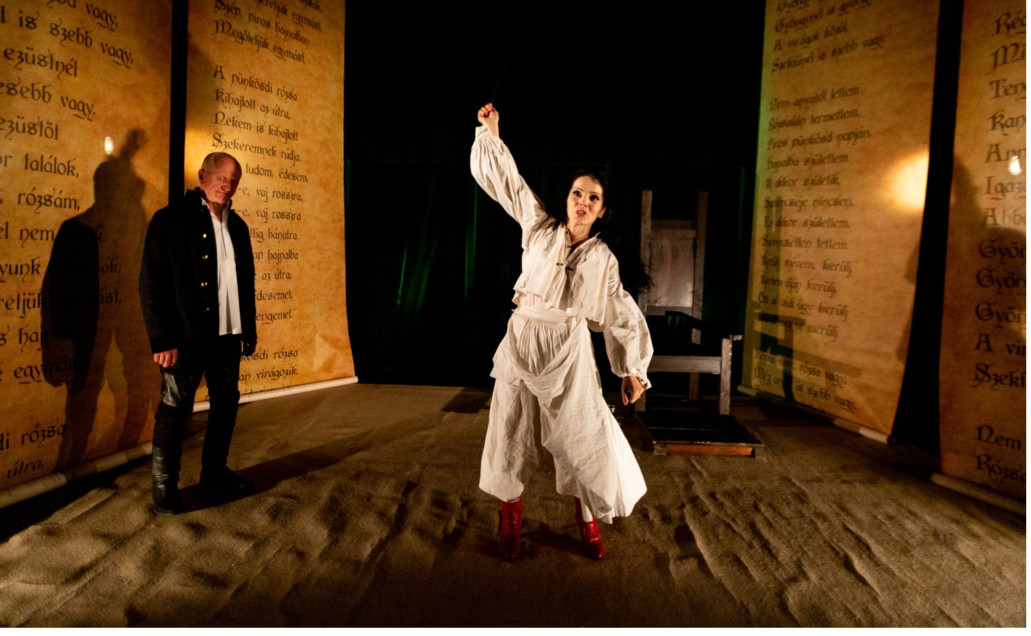 A rituális színház törvényszerűségeit felhasználva időtlenné tehetjük a történelmi-népköltészeti elemeket is magában hordozó drámát: a virágénekeket éneklő, ráolvasásokat motyogó-értelmező „boszorkány” egy újfajta performance-ra ad lehetőséget. A felhasznált népi mondókák, népdalszövegek, virágénekek nagy része ismerős lesz a közönségnek, csak más megvilágításban jelennek meg. A tánc, díszlet, jelmez, fény mind szerves részévé válik a művészi önkifejezésnek és önmeghatározásnak. A térrendezés, alakoskodás mindnyájunk életéhez tartozik, ezúttal kicsit másképpen nyilvánul meg, de felismerjük magunkat általa.