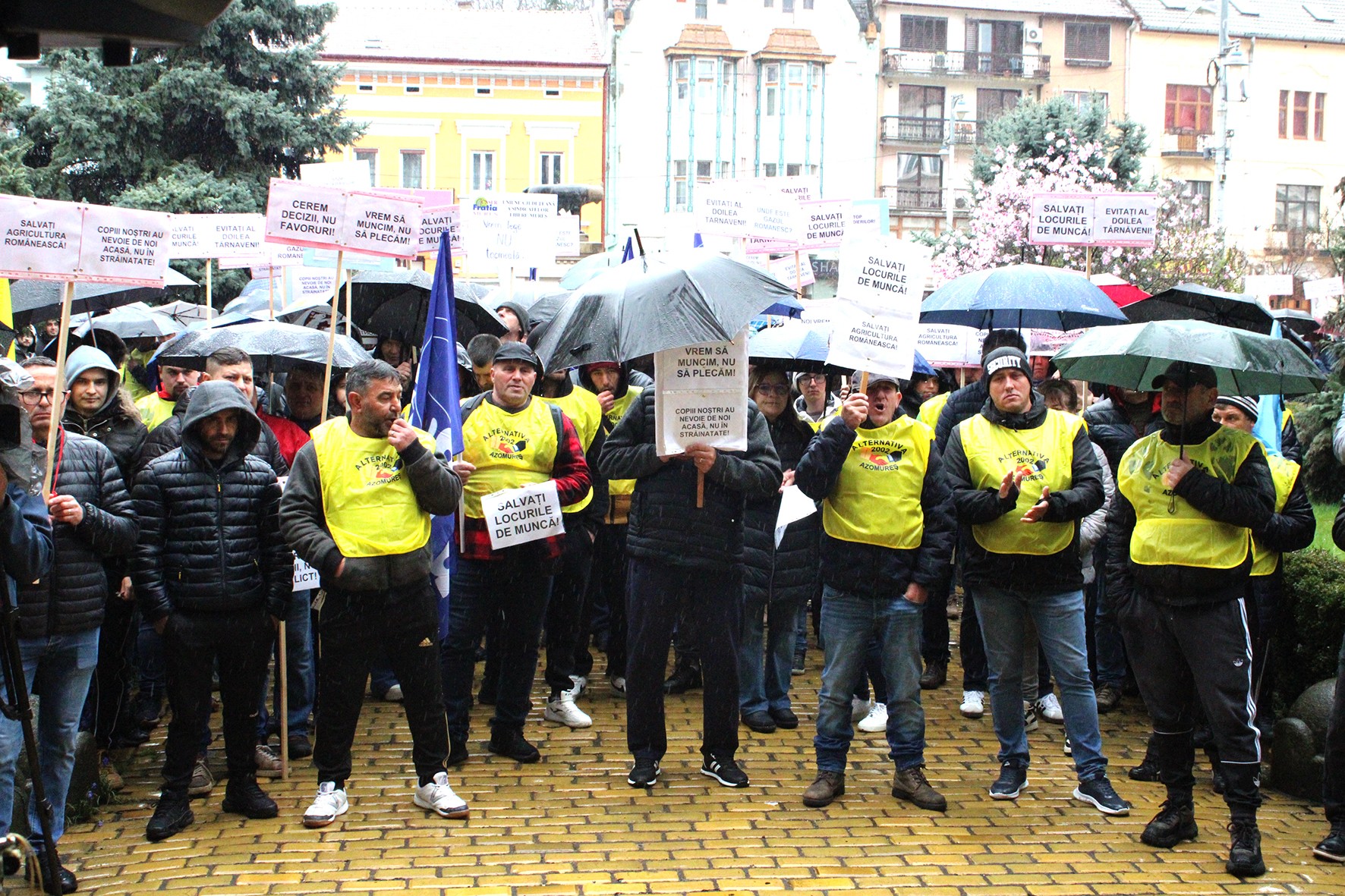 Az üzem dolgozóit tömörítő Alternativa 2002 szakszervezet elnöke, Emil Almășan elmondta, elégedetlenségük fő oka, hogy bár több mint másfél éve zajlanak a tárgyalások az Azomureș vezetősége és a Romgaz állami vállalat között a kombinát átvételéről, a helyzet mindmáig nem rendeződött. A felszólalók kiemelték, hogy készen állnak tovább tüntetni, amíg a probléma meg nem oldódik. A helyszínen több más szakszervezet képviselője is kifejezte, hogy együttérez a tüntetőkkel, kiemelve, hogy mindenben támogatják őket ebben a nehéz helyzetben.