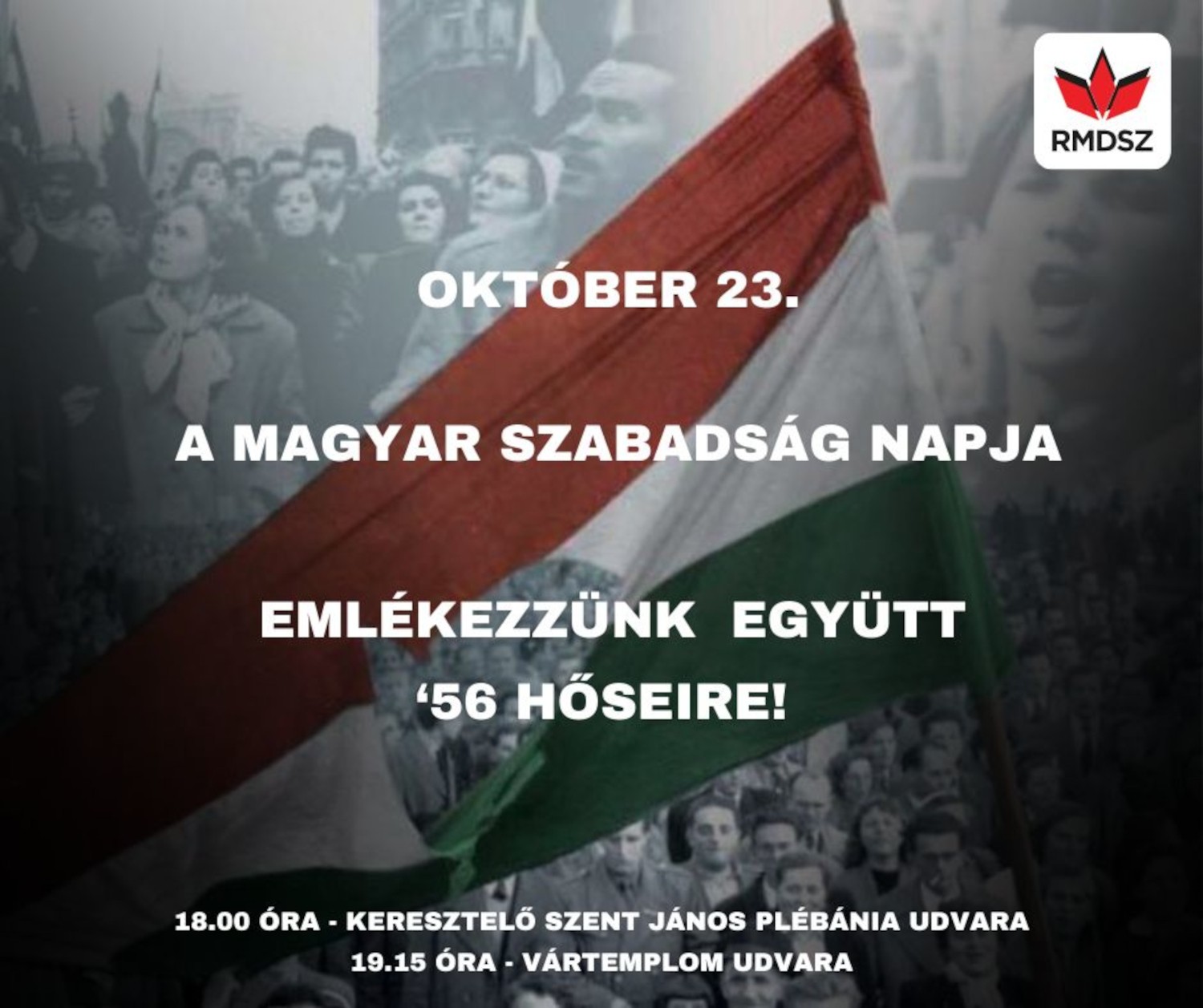 Az RMDSZ marosvásárhelyi szervezete október 23-án, szerdán az 1956-os magyar forradalom és szabadságharc hőseinek tiszteletére szervez megemlékezést.
