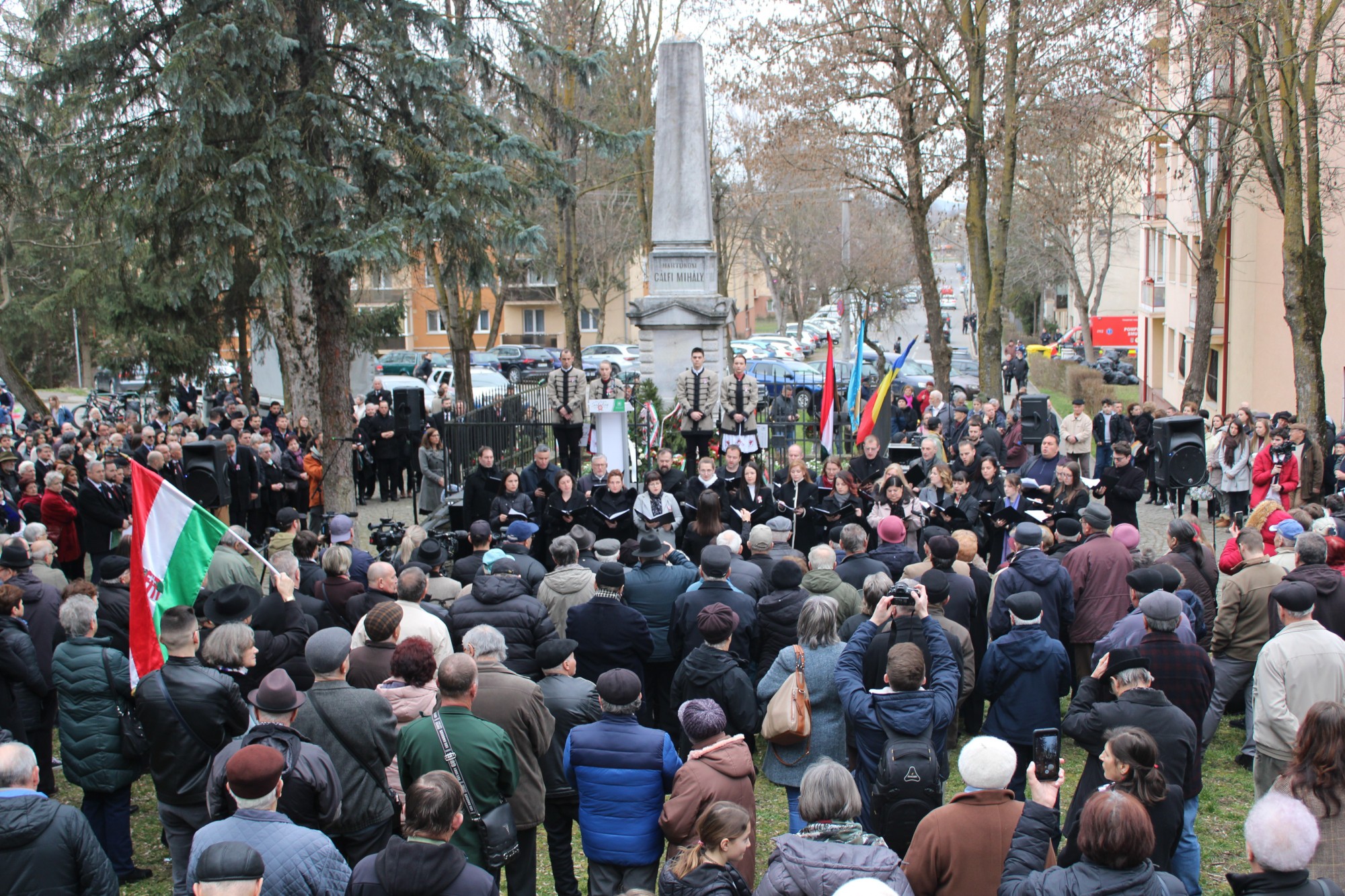 – Az 1848-as szabadságharc ismert és névtelen hősei egyaránt mutatták az irányt a Kárpát-medence magyarságának. Hajlamosak vagyunk elégedetlenkedni a vélt vagy valós balsors miatt, s oly ritkán emlékeztetjük magunkat, hogy sorsunkat viszont mi magunk alakítjuk. Amikor a nemzet egy emberként lázadt fel és rázta le magáról az elnyomó hatalom fojtogató láncait, akkor éppen a sorsát alakította. Ha fejét lehajtva, elfojtott félszavakkal méltatlankodott volna, az is a sorsának alakítása lett volna. A történelemkönyvek tán vékonyabbak lennének. De nekünk, mai magyaroknak, hál’ istennek vaskos történelemkönyvek jutottak. A 12 pont tiszta, békés és jogos követeléseket tartalmazott. Egy igazságos és szabad rendszerben nem kellett volna követelni. Küzdelmük és véráldozatuk is csak „pusztába kiáltott szó” lett volna, ha nem egy emberként, egy közös akaratként fordultak volna szembe az elnyomókkal. De ha két szóban kellene összefoglalni a követeléseiket, hogyan fogalmazhatnánk meg úgy, hogy egy járványhelyzet után, háborúval a közvetlen szomszédunkban, elszabadult élelmiszerárakkal a boltokban, a jóléti társadalom modern lakói is értsék, átérezzék, miért ragadtak akkor pennát, később kardot a márciusi ifjak? Biztonságot követeltek. Szabadságot követeltek. Csak az lehet szabad, aki biztonságban érzi magát. És csak az érezheti magát biztonságban, aki szabad. Aki aggódik a mindennapi megélhetése miatt, az nem lehet szabad, és nem is érezheti magát biztonságban. Ez az aggodalom, ez a félelem sajnos rányomta bélyegét a világjárvány óta eltelt három esztendőre. A szabadságért dolgozni kell, bölcs döntéseket hozni, őrizni, megbecsülni. Olyan korban élünk, amikor józannak, megfontoltnak és előrelátónak kell maradnunk. Észrevenni, hogy biztonságban élünk és szabadok vagyunk. S hogy felelősök vagyunk ennek megbecsülésében – mondta beszédében Péter Ferenc.