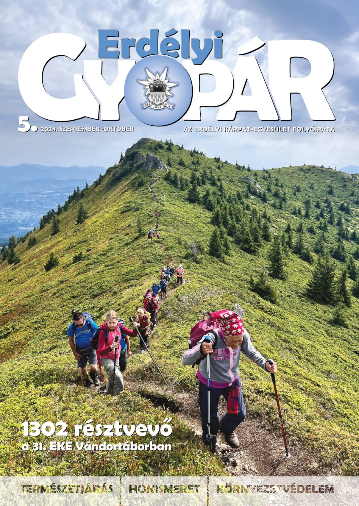 A legnagyobb természetjáró-találkozó idén is megtartotta rangját, elsőbbségét, 1302 résztvevő volt a 31. EKE-vándortáborban. Erről az eseményről olvashatnak a legfrissebb Erdélyi Gyopárban. Az Erdélyi Kárpát-Egyesület idei ötödik lapszáma szól még olyan írásokról, mint a Barangolások a borvizek földjén, Határvadász emlékhét a 80. évfordulón, A Csíki Természetjáró és Természetvédő Egyesület (CSTTE) kedvenc túrája – A Csomád-hegység, Vizes vendégeskedés a dési EKE-seknél. Örömmel adunk hírt arról, hogy a Gyopár gyermekmelléklete, a Gyopárka idén is megjelenhetett támogatók jóvoltából, így épül a jelzett túraútvonal a jövő generáció számára.