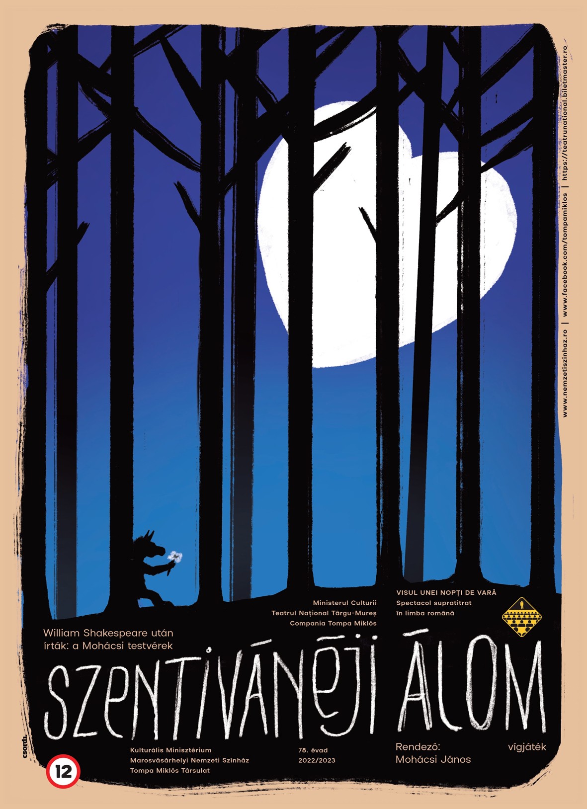 „Sehogy se bírunk mi, nők és férfiak – legyünk bárhogyan is összepárosítva – meglenni egymással. Beborul az ég a földön: az embereket irányító, kapuzárási pánikban szenvedő tündérkirály és királynő titkai kiderülnek, és az egymás iránti gyűlöletük mindenkit érint. De nem csak az időjárás romlik el, hanem megőrjítik az embereket is: mindenkinek a nyakába ömlik a tündéristenek fájdalma. Vajon miként javulhat meg egy kapcsolat, hogy béke lehessen földön-égen, és végre kisüssön a nap? Shakespeare legjátszottabb vígjátékán keresztül az ismert, Marosvásárhelyen is kedvelt rendező, Mohácsi János mutatja be a maga érzelmes-humoros módján az elmúlástól való félelmet” – írják az alkotók az előadásról, amelynek rendezőjét az előbemutatót megelőzően kérdeztük a produkcióról.