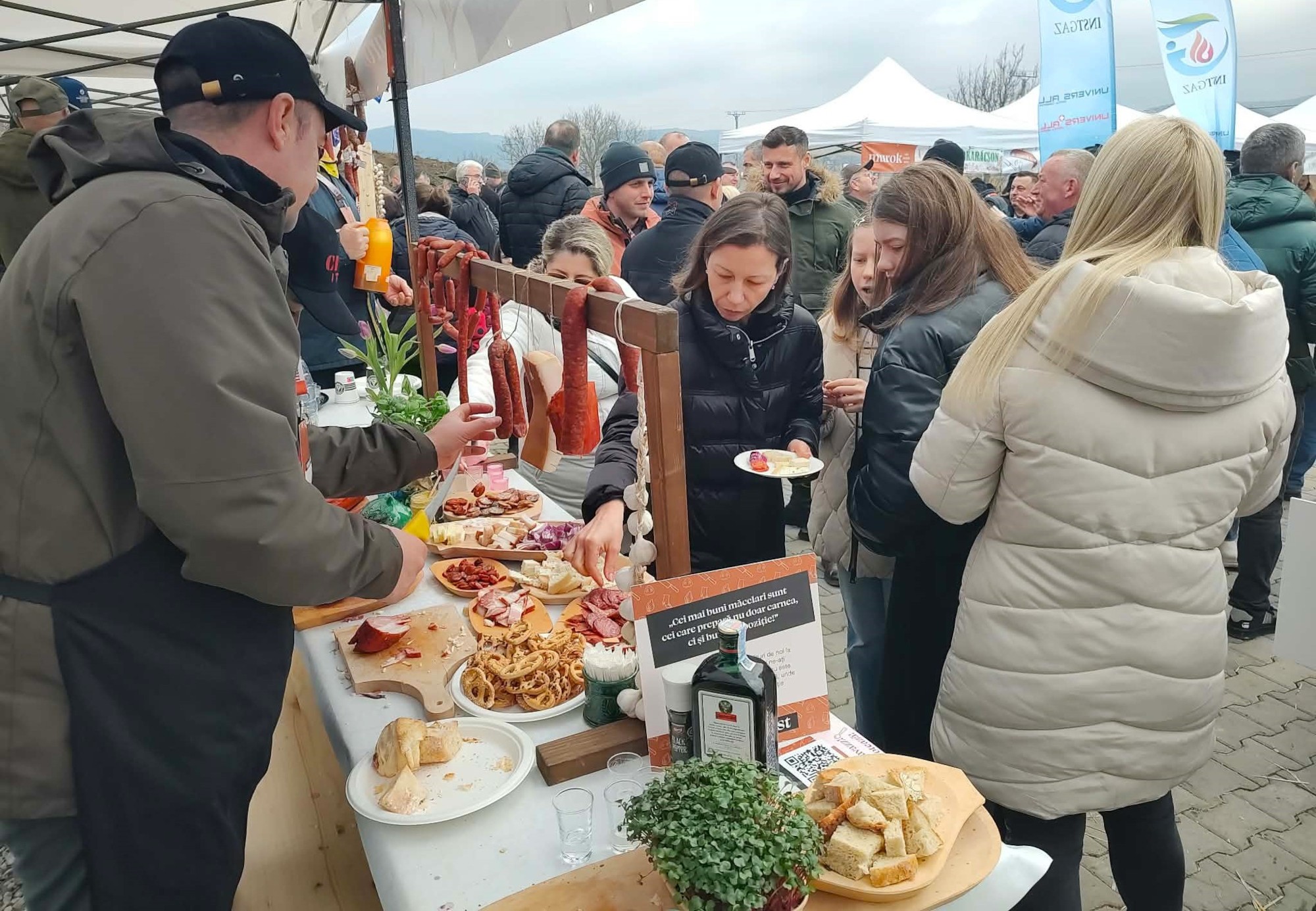 Az egyre nagyobb számban érkező látogatók kora délelőtt még zsíros kenyeret, sonkát, szalonnát, disznó- és vadhúsból készült kolbászokat kóstolhattak meg reggelire, de kora délután már a levesből, sültekből, torokpecsenyéből (természetesen puliszkával) is ehettek. Eközben innivaló is előkerült, s a nyárádmenti muzsikusok is derekasan dolgoztak azért, hogy egész nap énekszó és jó hangulat uralkodjék a téren. A sátorban a gyerekek szívesen vettek részt a disznólábak „manikűrözésében” (kidíszítésében), kicsik és nagyok kipróbálták a murokvágó kihívást (egy csövön leengedett zöldséget kellett hirtelen mozdulattal elvágni), vagy a disznódartsot, ahol „sertéspontos” dobásokra volt szükség, hogy valaki ne csak a malac hasát vagy combját találja el, hanem a farkát is „elkapja”.