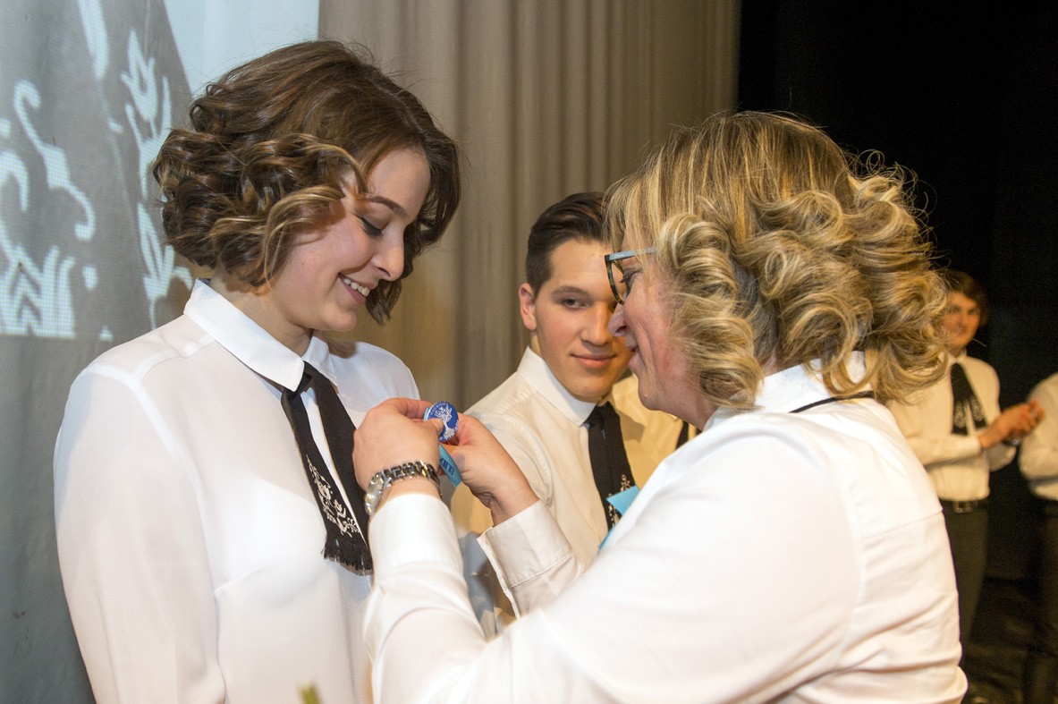 Az ünnepelt osztályok színpadra vonulása előtt a rendkívül találékonyan, élénk képzelőerővel összeállított rövidfilmeket tekinthették meg az érdeklődők. Diáktársaik és tanáraik tapsa közepette az osztályfőnökök feltűzték az iskolához tartozás, a gyermekkortól való elválás és a felnőtté válás jelképét a kilenc maturandus osztály 256 diákja mellére.