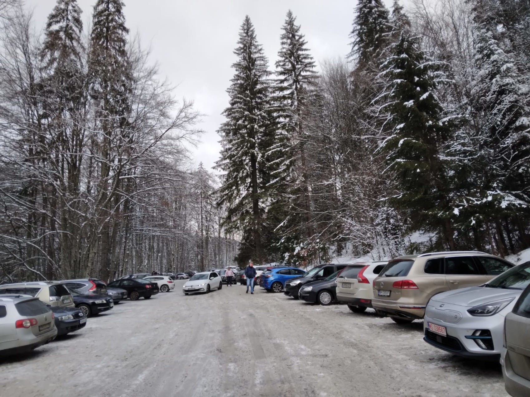 A parkolók tele voltak autókkal, a sípályák nyitása után vagy a dél felé érkezők már alig kaptak helyet. A Havas Bucsinnál nagyon sokan az út mentén hagyták az autót, száz méter hosszan fél sávot elfoglaltak az úttestből. De az ilyen helyen mindenki óvatosan és lassabban hajt, nem volt fennakadás. A sok autó utasai pedig birtokba vették a pályákat, amelyek tele voltak sízőkkel, szánkózókkal, sétálókkal, jókedvű és felszabadult emberekkel.