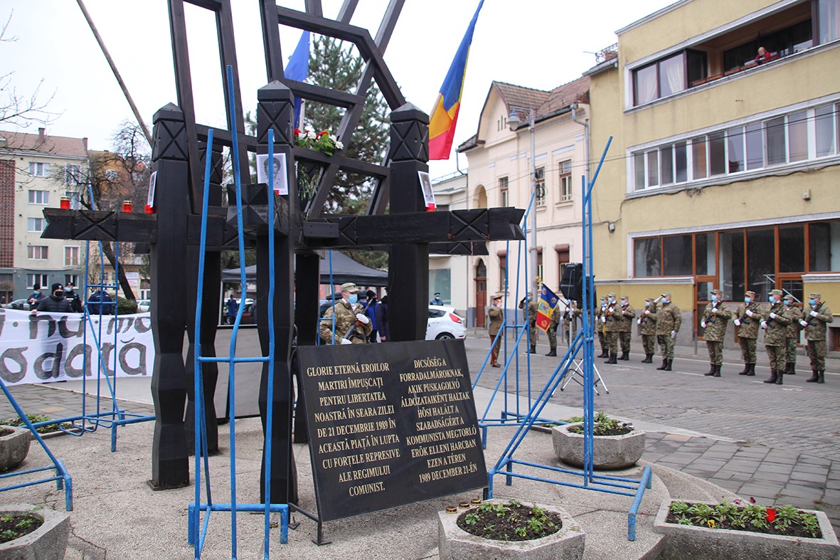 Hétfőn délelőtt – a vírusjárvány miatt rövidebb időtartammal – megemlékeztek az 1989. december 21-i eseményekről a marosvásárhelyi Győzelem téri emlékműnél, ahol az istentiszteletet követően megkoszorúzták az elesettek keresztjeit.