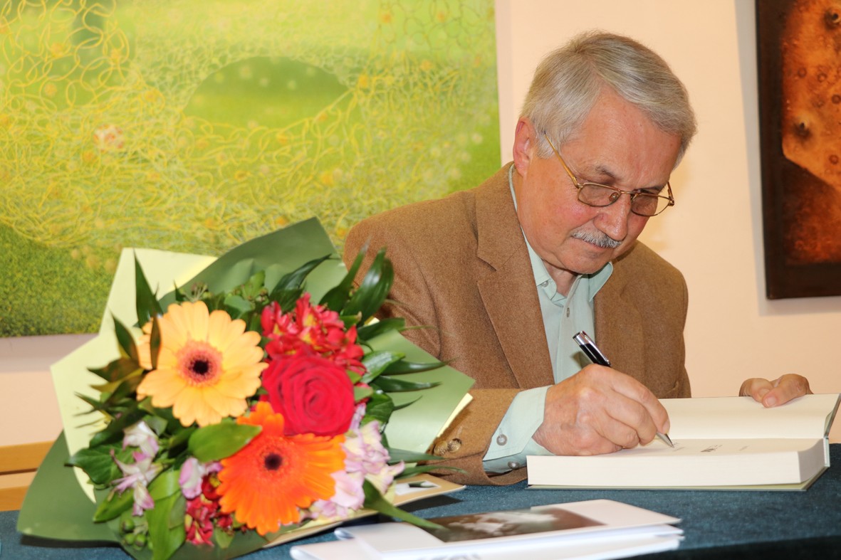 A könyvet Markó Béla méltatta: – Az utóbbi időben szokásunk panaszkodni, hogy kevesen vagyunk egy-egy könyvbemutatón. Ma este rá kell jönnöm, hogy nem a közönséggel van baj, hanem a szerzőkkel. Ide azért jöttek el ennyien, mert Nagy Miklós Kund megbecsült, tisztelt és fontos személyisége Vásárhelynek, és ezt a jelenlévők is tudják. Az utóbbi időben egyre kevésbé tudom szétválasztani a művet és az életrajzot, és egyre rokonszenvesebb az a megközelítés, amely nem feltételez ilyen törésvonalat a mű és alkotója között. Erdélyben pazarlás lenne ez a szétválasztás: az alkotó ember itt egyúttal mindenes is volt, ezért könnyű volt egészen jelentős alkotókkal illusztrálni, hogy az élet, a tettek és a művek szervesen összetartoznak. Itt van előttünk egy szép és vaskos kötet, egy jelentős gyűjtemény, amely 10 év interjúit, beszélgetéseit, tárcáit, jegyzeteit, publicisztikáit, kisesszéit tartalmazza. Egy ilyen könyv megszülethet úgy is, hogy a szerző rendszeresen rögzíti a reflexióit, de e mögött a könyv mögött sokkal több van: az alkotó állandó vásárhelyi jelenléte mutatható föl. Előadások, események, különböző fontos megmutatkozások kapcsán születtek a beszélgetések, még az útleírások is a szerzőnek a világban való állandó jelenlétét feltételezik. Én ezt a fontos és súlyos jelenlétet szeretném méltányolni. Beszélgetéseiben, jegyzeteiben, kritikáiban nem szorítkozik Marosvásárhelyre, de tagadhatatlanul Vásárhely-centrikus értelmiségi, aki szereti a várost, és aggódik is annak jelenéért, jövőéért. Állandó kapcsolatban áll az alkotókkal, művészekkel, képzőművészekkel, írókkal. Ez a könyv és mindaz, amit NMK ír és tesz, éppen az empátiája által rendkívül fontos. A kötet több mint fele beszélgetésekből áll, a szerző rendkívül jelentős alkotókkal társalog. Ami jellegzetesen NMK-i alkotói magatartás, az a megértés, a nyitottság arra, akit kérdezünk, akinek az éle-tére, a véleményére kíváncsiak vagyunk. Ez a könyv annak is bizonyítéka, hogy ebből a kíváncsiságból születhetnek érvényes, jelentős és hiteles szövegek. A szerző portréját ezekből a kérdésekből is meg lehetne rajzolni, mert belőlük körvonalazható, hogy milyen az ő világa. Emellett pedig itt vannak a kritikák és a szépirodalmi jellegű, magas hőfokú írói jegyzetek. Ilyenkor érezzük: milyen kár, hogy nem ír több szépírói szöveget, hiszen azok kapcsán derül ki, hogy a kérdező mögött egy nagyon eredeti képalkotó fantáziájú író rejtőzik. Méltányolnunk kell, hogy évtizedek óta van Vásárhelyen egy olyan, művészetekre érzékeny és azokra odafigyelő ember, aki monográfiák tízeit írta meg, és a kritika-, illetve művészettörténet-ínséges időkben mindig oda lehet rá figyelni. Ezzel pedig (kevésbé) szürke eminenciásává vált a helyi művészeti életnek – mondta a méltató, majd a könyvismertető beszélgetésbe váltott a kérdező Markó Béla és a válaszoló szerző között.