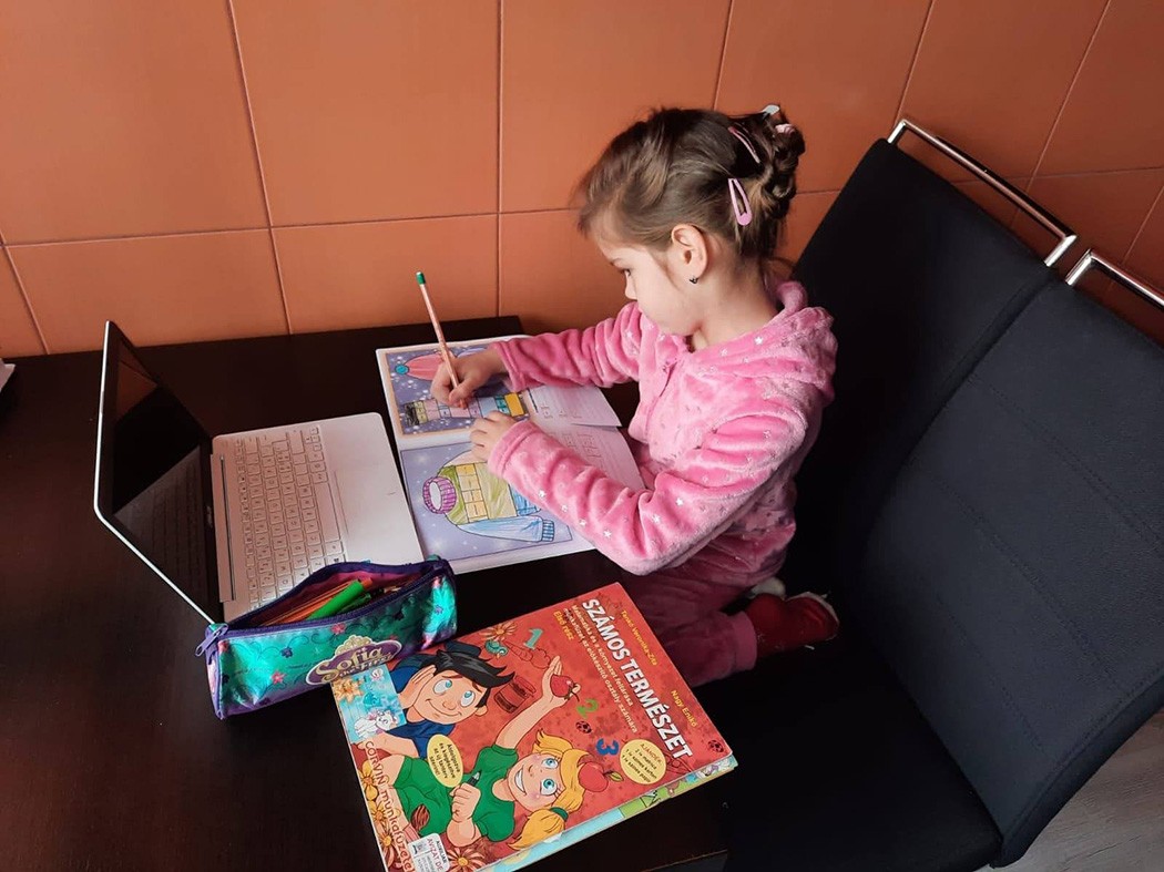 – Létfontosságú lenne, hogy az elsősök mellett ott legyen a pedagógus. Mondta is a lányom tanítónője, hogy a húsz év alatt, amióta pedagógus, nem voltak olyan elsősei, akiknek ne fogta volna meg a kezét a betűtanulásnál. Nálunk az osztály rendelt kis táblácskákat, arra írják a gyerekek a betűket, a tanítónő pedig követi a kamerán – osztotta meg a kényszerhelyzet szülte tapasztalatokat az édesanya. A technikai eszközök, valamint a minden családtag számára külön helyiség biztosítása sem egyszerű, az apukának a munkavégzéshez szüksége van egy laptopra, ezenkívül még egy hordozható számítógép van a lakásban, szerencsére barátoktól kaptak kölcsön egy készüléket, hogy mindkét kislánynak jusson. A két iskolás lány egy szobában tanul, mindkettő fülhallgatóval, hogy ne zavarják egymást, az óvodás kisfiú pedig alkalomadtán az anyuka telefonjáról kapcsolódik be az ovis találkozókba. Az édesanya megjegyezte: sajnos a harmadikos lányának vannak osztálytársai, akik délelőttönként egyedül vannak otthon, ugyanis a szülőknek nincsen lehetőségük az otthoni munkára.