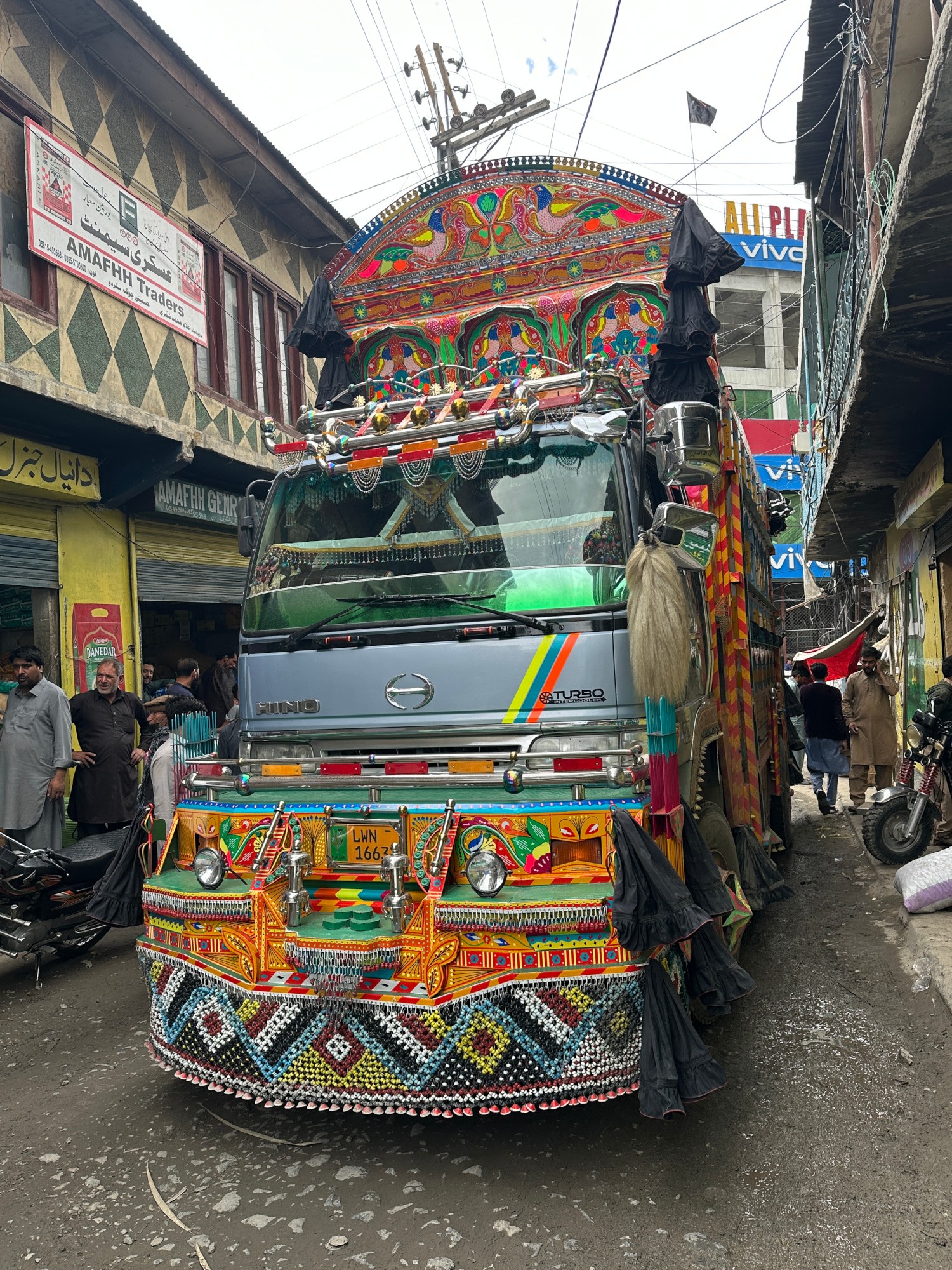 Sétáló teheneket kerülgettünk, az autók közt szemétkupacokból szedegető kecskék és birkák bóklásztak, de láttam sok olcsó okostelefonos üzletet és több patikát is, amelyek egyikében még a patikussal is megismerkedhettem. Nem tűnt szegény városnak, az emberek is jó bőrben voltak. Furcsa volt látni a műhelyük előtt tevékenykedő cipészeket, akik látványsuszterekként javították meg még a leghitványabb strandpapucsokat is, de az is érdekes volt, hogy a régi újságpapír is eladó, hiszen ott még mindig abba csomagolják a megvásárolt termékeket, az élelmiszereket is. Alig tudtam betelni a pakisztáni utcaképhez hozzátartozó agyondíszített, giccses tehergépkocsikkal, amelyek többnyire árut szállítottak. A helyiek minket bámultak, mi meg őket, a mecsetekbe özönlöttek imádkozni az emberek. Feltűnően több férfi volt az utcán, a nők elsődleges feladata a gyermeknevelés, háztartás.