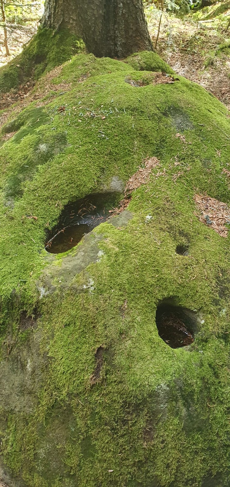 Gyergyócsomafalván, a Délhegy mezejének a szélén van egy nagy lapos kő, amelyben, a hiedelem szerint, Jézus lábának és botjának (egyesek szerint a szamár patájának is) nyoma látható. A régi öregek úgy tartották, hogy amikor Jézus a földön járt, itt maradt a lábnyoma, amelyből sohasem szárad ki a víz. Ezért kérte sok beteg, hogy ebből a vízből vigyenek neki, a gyógyulás reményében.