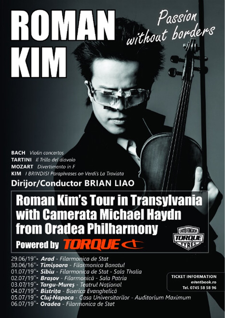 Amint azt korábban is hírül adtuk, Roman Kim világhírű hegedűművész ma Marosvásárhelyre érkezik. Az ifjú, nonkonformista, ennek ellenére (vagy talán éppen ezért is) világszerte hírnevet szerzett művész lenyűgöző tehetségének híre internetes videóin keresztül terjedt el, melyek nyomán a világ legnagyobb és legnevesebb koncerttermeiben léphetett fel. Ötéves korában kezdett el hegedűn játszani, hétévesen nyerte első nemzeti versenyét. A Moszkvai Központi Zeneiskolában Maxim Vengerov és Galina Turtchaninova tanítványa volt, majd a Musikhochschule Köln intézményében tanult Viktor Tretyakovnál. Azóta számos verseny győztese, Kölnben él. Jelenleg erdélyi koncertkörúton van, ma este Marosvásárhelyen lép fel.