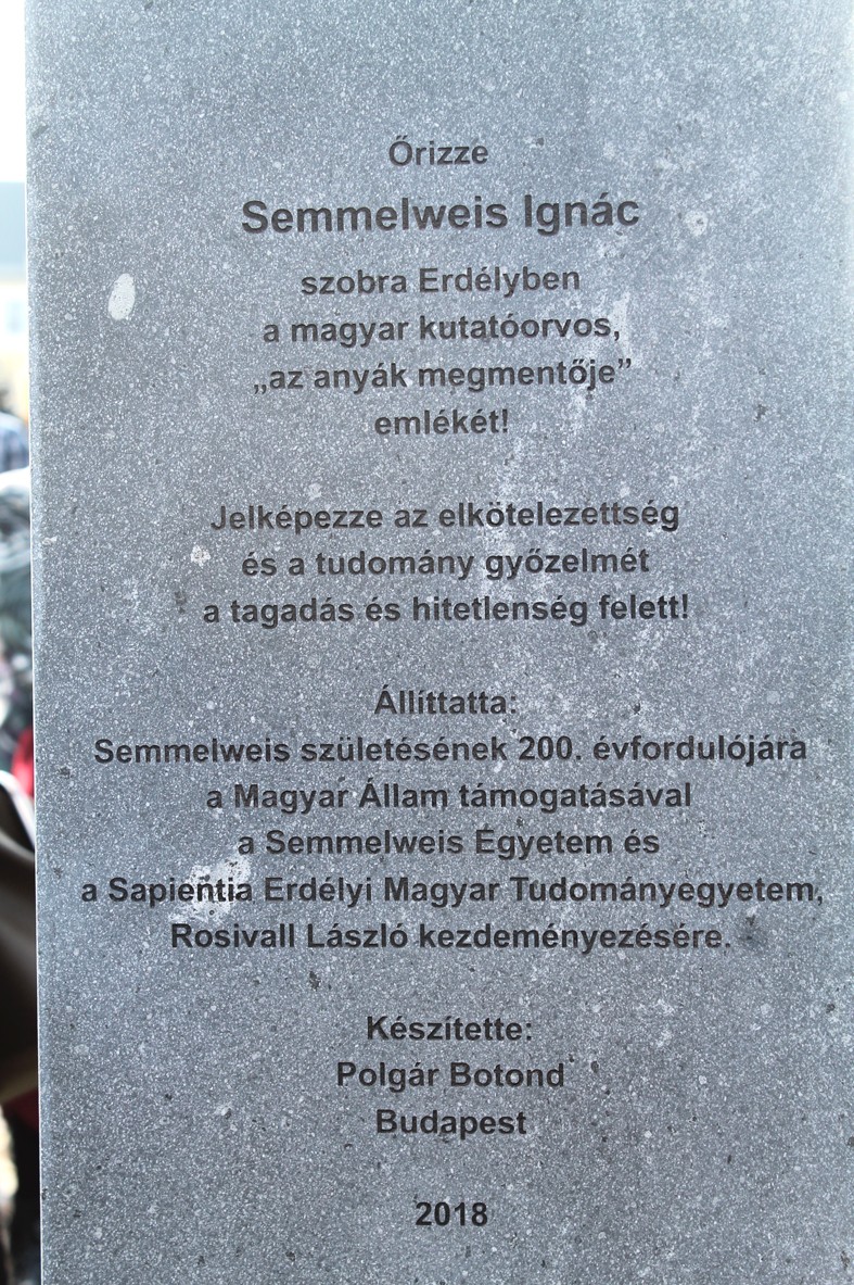 A magyar orvostörténet világszerte legismertebb egyéniségének tiszteletére április 6-án emlékezetes ünnepség keretében a Sapientia EMTE Marosvásárhelyi Karának koronkai campusában felavatták Semmelweis Ignác Fülöp bronz mellszobrát. Polgár Botond szobrászművész alkotása a magyar állam támogatásával a budapesti Semmelweis Egyetem ajándéka.