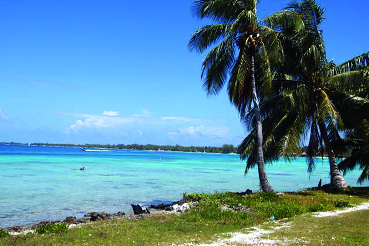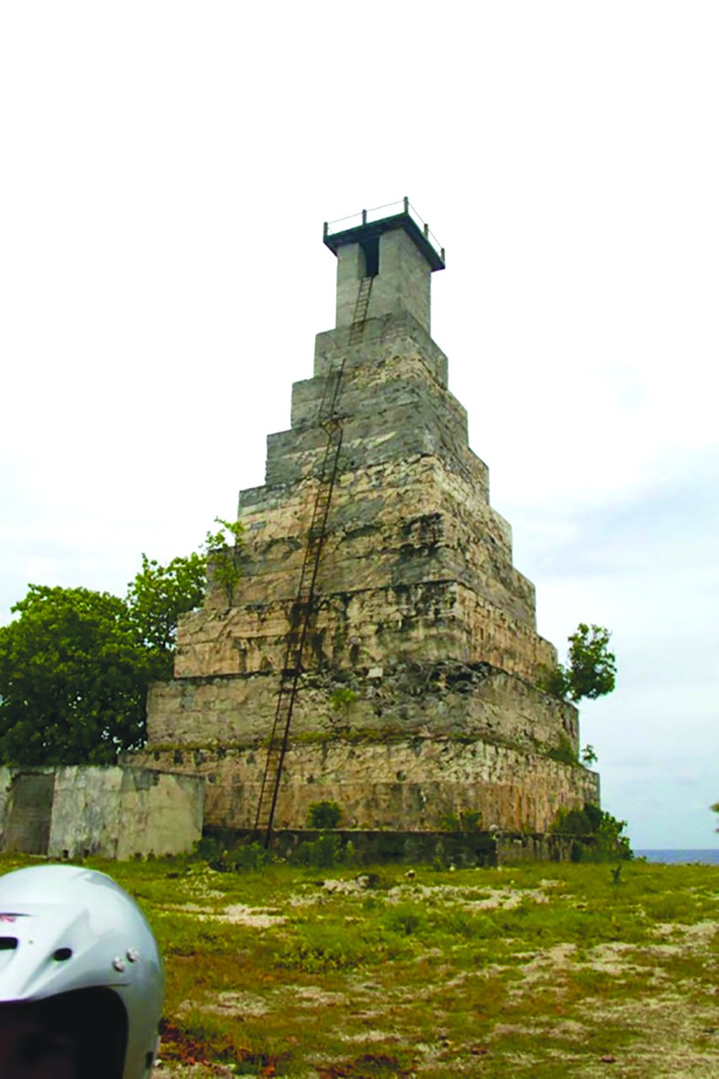 Mikor azonban megpillantottuk Fakarava szigetét, az eső már elállt, de az ég teljesen felhős volt, és ilyen is maradt egész nap. Előttünk a sziget, de kiábrándítóan lapos. De hát milyen is legyen, hiszen az egész egy korallzátony! Itt is az óceánon kötöttünk ki, de innen már egyszerű a partra szállás, 10 perc alatt mentőcsónakkal ott is voltunk. Egy kis helyi zenekar fogadott, két helyi nő virágokat osztogatott, nagyon barátságosak voltak. Egypáran mind könnyűbúvár-, mind szárazföldi túrát ajánlottak. Mi megegyeztünk az utóbbiban, és máris felültünk egy terepjáróra. Egy-egy ház, sok pálmafa és egzotikus virág. Az út köves, kavicsos volt, és ilyen maradt végig. Balra indultunk a két lehetséges út közül: az a néhány lakóház is eltűnt, s maradtak a pálmafák meg a trópusi virágok. Egy adott pillanatban eljutottunk az egykori világítótoronyhoz. Távolról egy karcsú épület Chichen Itzára emlékeztetett, közelről azonban csak egy elég durván öntött betonhalmaz. Ahol jártunk, a sziget keskeny, talán 100-150 m széles, mindkét oldalon lehet látni az óceánt.