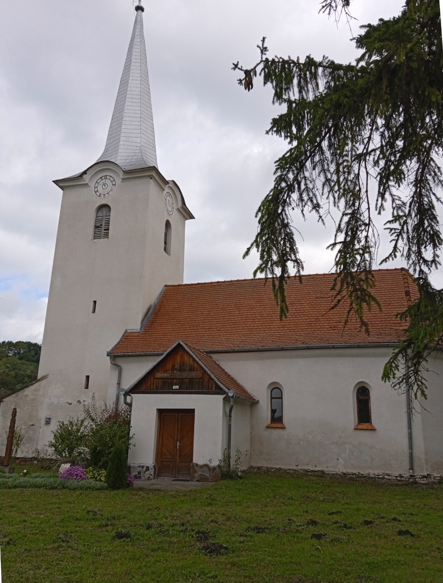– Tehát az utazásunk során eljutottunk az előbb az utcákat követve az unitárius műemlék templomig, ami a falu csorgója előtt, Kun Mátyás gróf birtokán épült 1772–1784 között. Mindezek után a felépített templom bejáratát lepecsételték, és mellette a paplak udvarán levő csűrben tartották több évig az istentiszteleteket.