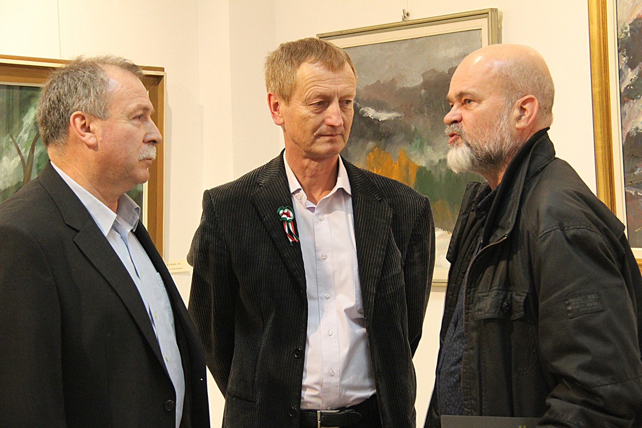 Hárman a műgyűjtők közül (balról): Szepessy László, Salat Csaba, dr. Madaras Sándor a megnyitón