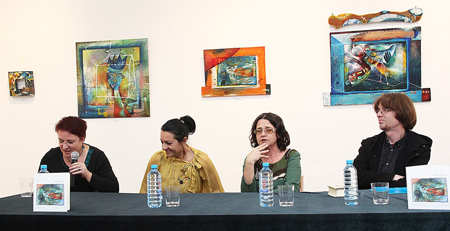 A tárlatnyitó könyvbemutatón (balról) Szuszámi Zsuzsa, Darvay Tünde, Gálfalvi Ágnes, Balázs Imre József