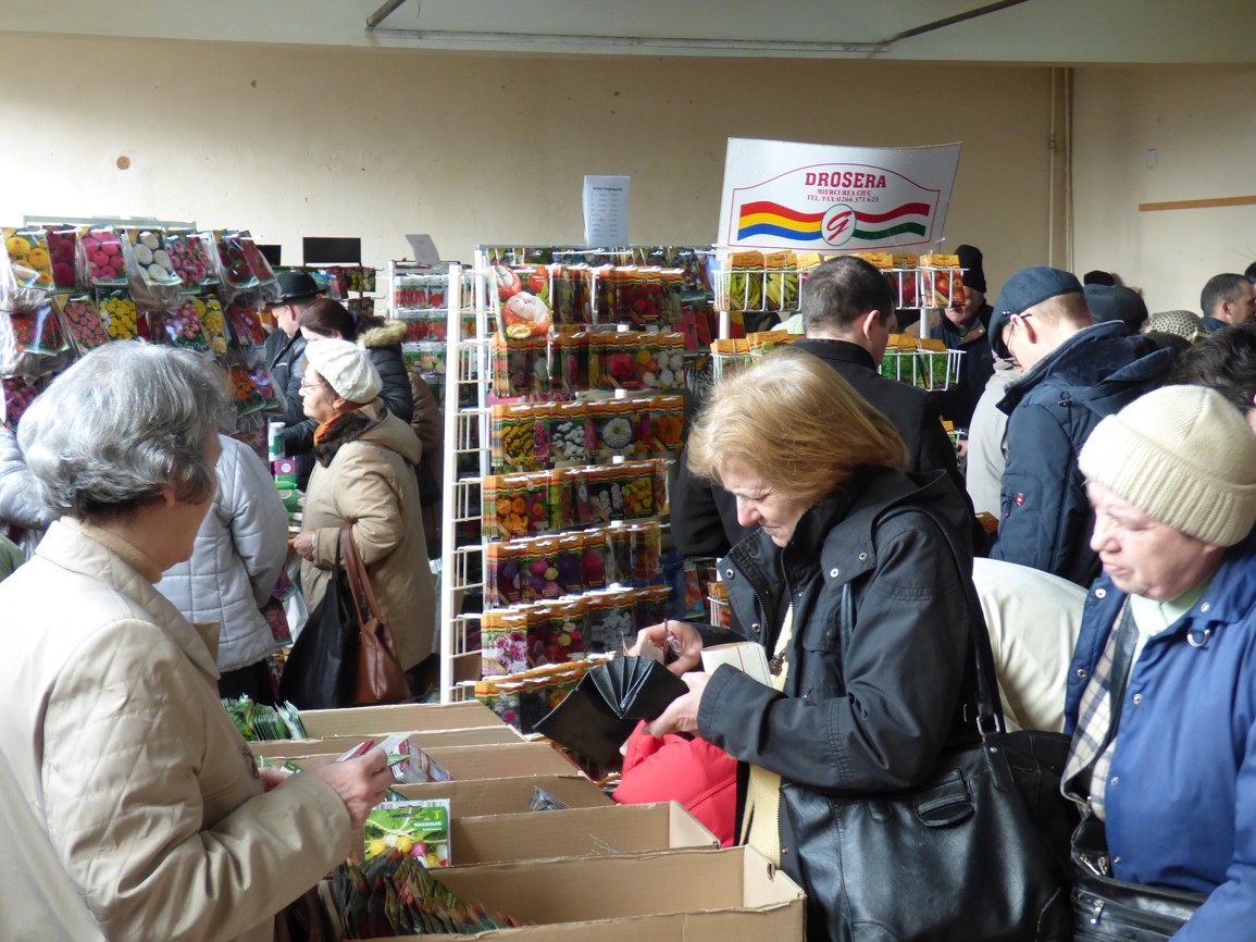 Hűvös, de napsütéses reggel fogadta a nyárádszeredai kertészvásárra igyekvőket, és a péntek esti kiadós eső nem sok embert riasztott el attól, hogy a szombat délelőttjét szemlélődéssel, vásárlással töltse. Meglepően sokan már korán megtöltötték a művelődési ház előcsarnokát, báltermét és az épület előtti teret. Volt is mit számba venni, hiszen 21 termelő foglalt standot. S hogy jókedvvel kezdjük a vásárlást, két helyen is színpompás virágok fogadtak: a cikláment 20, a primulát 10, a muskátlit 30, a tulipánt 7 lejért, a jácintot 7-13 lej közöti áron kínálták. Gyönyörű díszcserjék sorakoztak egy helyi termelőnél, csüngő eper-, szeder-, szőlő-, piros- és feketeribizli-tő, csicsóka, de még lila akác és szomorúfűz-hajtás is kapható volt, nem beszélve a rengeteg rózsatőről, csombordi és nyárádszeredai gyümölcsfacsemetéről. Egy „murokországi” termelő fokhagymát kínált 30 lejért, és volt rigmányi bor, helyi méz és mézespogácsa, gyönyörű virágkompozíciók és gyertyák is. Több cég kínált konyha-, illetve virágkerti magvakat és hagymákat, az olvasás szerelmeseit pedig könyvstand várta, sőt délben a városi könyvtárban érdekes könyvbemutatót is tartottak: a nagyajtai Barabás Miklós kertészmérnök, tanár Növényi ornamentika Erdővidék népi díszítőművészetének világában c. kötetét vehették kézbe az érdeklődők.