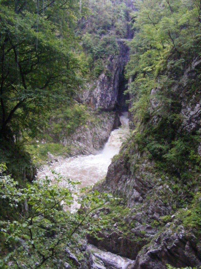 Továbbra is a mélyben zakatoló, vízesésekkel tarkított folyót követjük, kanyargós úton. Útközben elmegyünk a Megkövült vízesés nevű cseppkőformáció mellett, majd kiérünk a Tálak termébe, ahol teraszosan lerakódott mésztufa alakzatok vannak.
