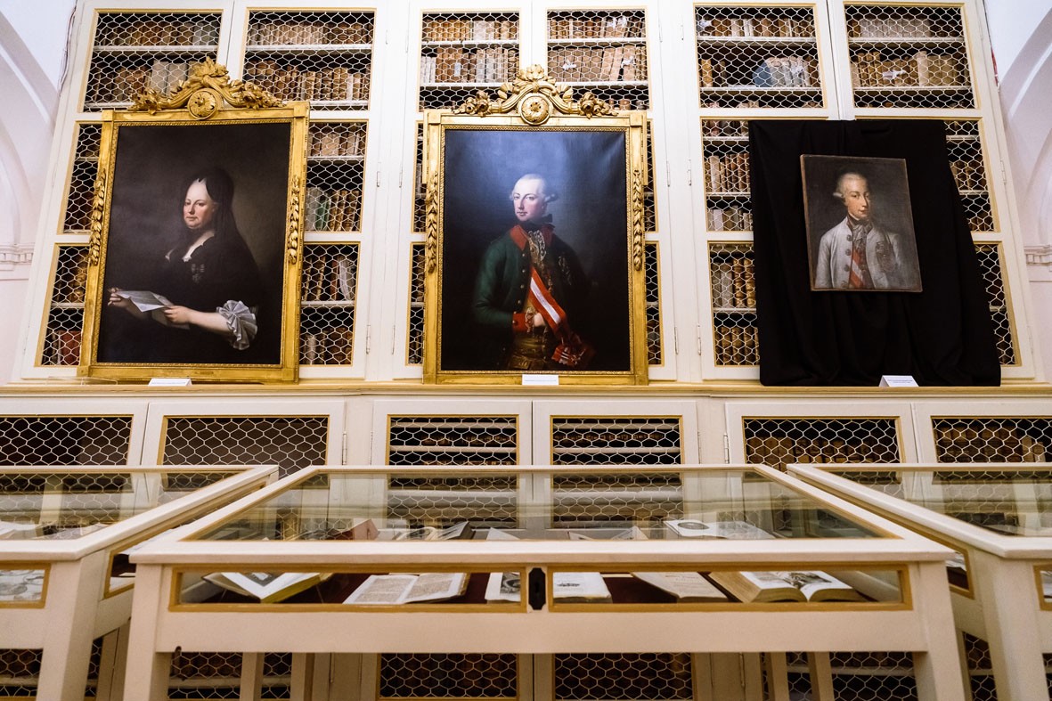 Az év leglátványosabb minikiállítása a Múzeumok éjszakájára készített Császárok szolgálatában c. tárlatunk volt, amely három császárportré, Mária Terézia, II. József, II. Lipót korabeli képei köré épült. A festmények valamikor a Téka nagytermét díszítették, ezeket a hatvanas években felsőbb utasításra át kellett adni a Maros Megyei Múzeumnak. Ideiglenes visszakerülésük is a Teleki-emlék-év egyik ünnepélyes momentuma, ennek tiszteletére készítettük a három uralkodóról és Teleki Sámuelhez fűződő kapcsolatukról a kis összeállítást. A kiállított könyveken keresztül azt próbáltuk érzékeltetni, hogy Teleki Sámuel milyen információkat tartott fontosnak eljuttatni Marosvásárhelyre az általa szolgált koronás főkről.