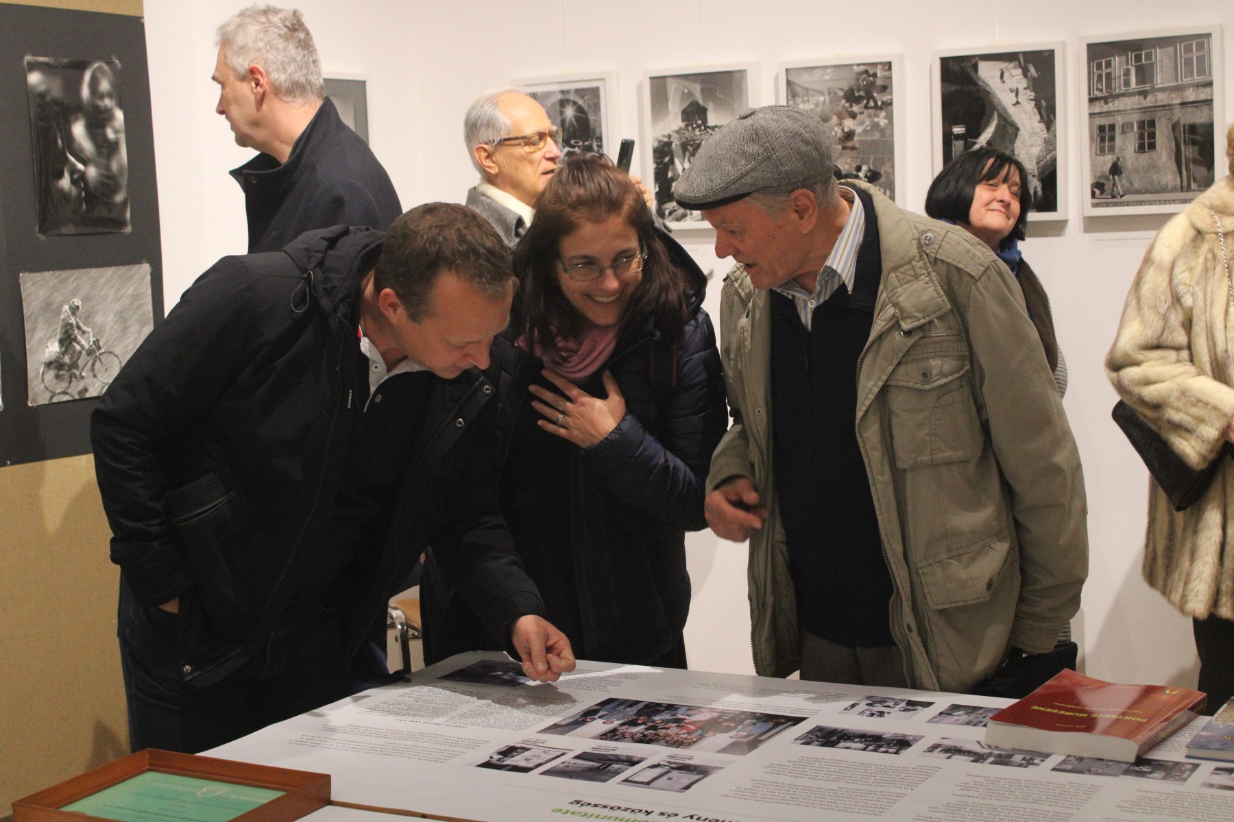 A Marosvásárhelyi Fotóklub jelenlegi tagjai az egykori tagok csoportképe előtt