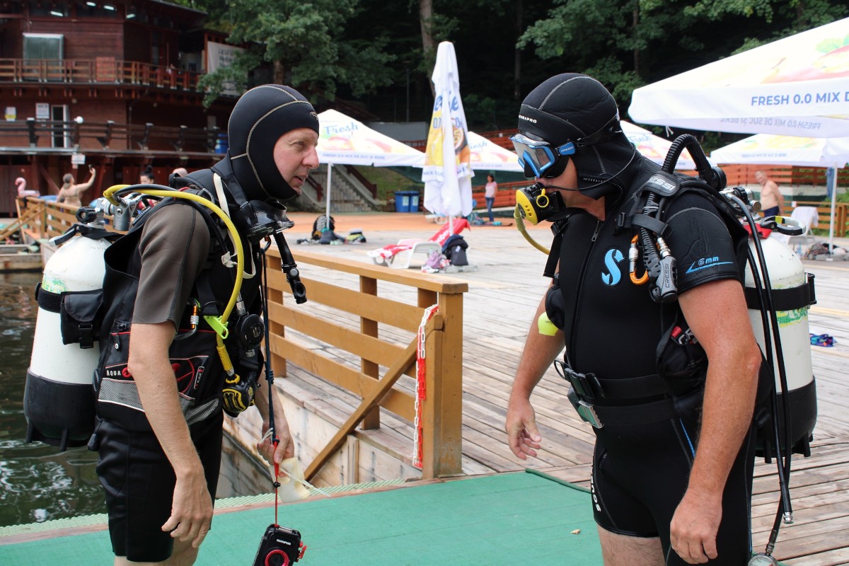 A sajtótájékoztató végén a riporterek egy sekély medencében kipróbálhatták a búvárfelszerelést, melynek palackjait a kolozsvári Transylvania Dive Center bocsátotta rendelkezésükre. Felejthetetlen élmény volt a víz alatt lélegezni, de megállapítottuk, hogy nem lehet könnyű dolga egy kutatóbúvárnak.