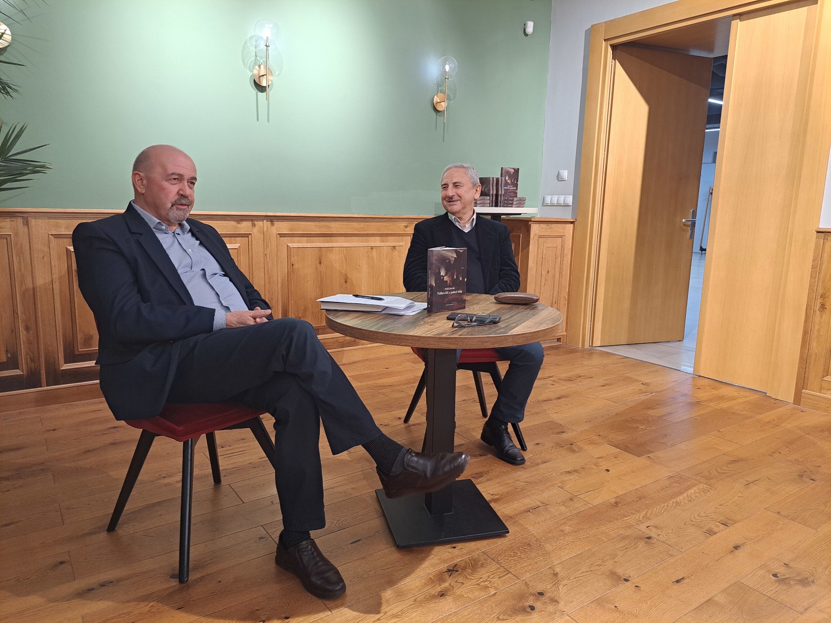 A könyvbemutató szereplői a marosvásárhelyi Studium Hub kávézójában (balról): Markó Béla és Káli István Fotó: N.M.K.