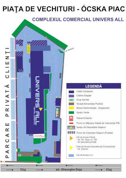 A marosvásárhelyi tanács idei augusztus 31-i ülésén született meg a 292-es számú határozat, amely jóváhagyja az új ócskapiac működési szabályzatát. Az ócskapiacot az Instgaz Kft. üzemelteti, biztosítja az infrastruktúrát a Dózsa György utca 193. szám alatt, az UniversAll komplexumhoz tartozó területen.