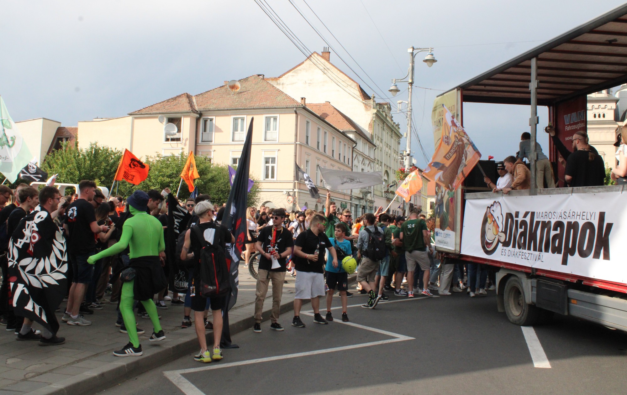 A diáknapokon a felvonulás egyfajta megnyitóünnepsége az eseménynek. A járvány előtti években Marosvásárhely főteréről vonultak fel a diákok a Kornisa sétányra, a Marosvásárhelyi Magyar Diákszövetség (MMDSZ) irodájához. A tavaly, a diáknapok különkiadása alkalmával nem volt felvonulás. Idén ez visszatért, igaz, nem a hagyományos formában. – Különféle szabályzatok változása miatt arra kényszerültünk, hogy statikus eseménnyé, körmenetté alakítsuk át a felvonulást – mondotta el lapunknak Demeter Orsolya, a diáknapok társ főszervezője, és azt is hozzátette, hogy a résztvevőkön nem látszott csalódottság. Ez annak is betudható, hogy a szervezők készültek a helyszínen egy kisebb bulival. Nem mellesleg ez az alkalom, amikor a város lakossága láthatja a diákokat, akik a hétköznapokon az egyetem padjaiban ülnek, továbbá ez egyfajta bizonyságtétel is, hogy tudunk kulturált formában szórakozni – nyomatékosította Demeter Orsolya.