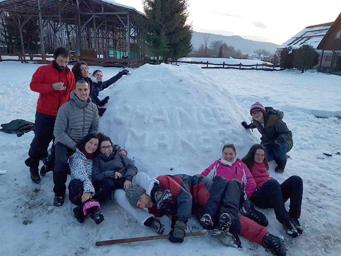 A Changemakers (Változáshozók) elnevezésű programban, amely két szakaszból áll, hat európai ország (Olaszország, Spanyolország, Portugália, Lengyelország, Magyarország és Románia) fiatalokkal dolgozó szakemberei vettek részt, célja az volt, hogy olyan ifjúsági munkások, trénerek számára kínáljon tanulási lehetőséget, akik még nem vagy csekély tapasztalattal rendelkeznek a hátrányos helyzetű fiatalokkal való munkában, ugyanakkor otthonosak az informális oktatás, a tapasztalati tanulás terén. Az első szakaszban 10 napos tréninget tartottak január 17-26. között az Outward Bound Románia szovátai ifjúsági központjában, ahol az ismerkedést és csapatépítést követően a résztvevők az outdoor és élménypedagógiai módszertannal ismerkedtek meg, bővítették gyakorlati ismereteiket, arra fókuszálva, hogy miként lehet ezeket a gyakorlatokat és módszereket alkalmazni a hátrányos helyzetű fiatalok körében. Ezenkívül a résztvevők játékos feladatok során fejlesztették önismeretüket, megismerkedtek saját kommunikációs stílusukkal, és az erőszakmentes kommunikációról is tanultak. A gyakorlati képzésen iglut építettek, kipróbálták a jurtában alvást, megosztották egymással a fiatalokkal való munkában tapasztaltakat. A program kiemelkedő eseménye volt a háromnapos, hótalpas expedíció a Görgényi-havasokban, ami kimozdította a résztvevőket komfortzónájukból. Megtapasztalták a csoportdinamika alakulását és azt is, hogy miként lehet megküzdeni a különböző kihívásokkal. A munka mellett jutott idő szórakozásra is, lehetőség volt, a kulturális estek alkalmával, hogy minden nemzet bemutassa saját országát, a természeti értékeket, érdekességeit, néptáncait és a hagyományos gasztronómiát.