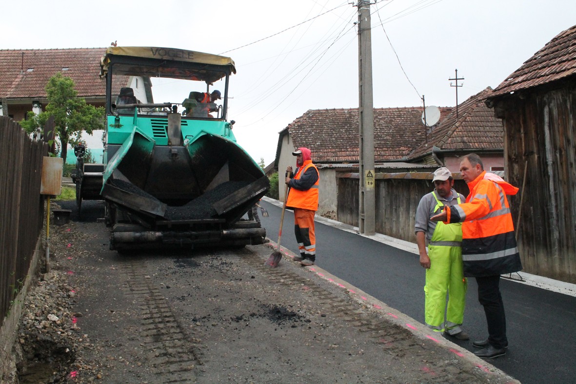 A Kis-Küküllő menti községben mindenekelőtt azt a nem kevesebb mint 1.737.331 eurót, azaz 7.991.724 lejt emelnénk ki, amely 18 kilométer aszfaltburkolatot eredményezett Szőkefalva, Küküllőpócsfalva és Vámosgálfalva legeldugottabb zsákutcáiban, de még egyes mezőgazdasági területekre vezető földutakra is. A tavaly áprilisban elindított újabb uniós pályázat révén 7,4 km-t aszfaltoztak le, hidakat, sáncokat, átereszeket korszerűsítettek, tizenkilenc községi utca kapott aszfaltburkolatot a közel egymillió eurós uniós támogatásból. Az országos vidékfejlesztési program keretében az aszfaltozással egyidejűleg a mellékutcák mentén húzódó sáncokat mélyítették és kibetonozták, helyenként vízlépcsőket alakítottak ki, támfalakat építettek, a romatelepen pedig az elkövetkező időszakban építenek támfalat a domboldalba. Az árvízveszélyes helyeken az ingatlanok elé betonhidak kerültek – a vízhozam függvényében kisebb vagy nagyobb átmérőjű betongyűrűkkel – így nagyobb esőzésekkor nem kell áradástól tartsanak a helyiek. A tavaly októberben megkezdett útkorszerűsítés keretében a fejlesztési minisztérium finanszírozásával 3,7 km-t aszfaltoztak le, és a falutól legtávolabb eső ház lakója is aszfaltúton érhet otthonába, de még a mezei utakra is jutott, így a szőlőhegybe is, jelenleg pedig a romatelep utcáinak az aszfaltozási előkészületei zajlanak. Ezekért az előnyökért a leghálásabbak azok, akik egykor sárban kellett otthonukig gyalogoljanak. Az év végéig befejezik az aszfaltozást, és a község utcahálózata 99%-ban aszfaltburkolattal lesz ellátva. Ottjártunkkor az esős idő ellenére is dolgoztak. Amint a polgármester kifejtette és a szakemberek megerősítették, a csepergő eső nem befolyásolja az aszfaltréteg minőségét, mivel magas hőfokkal érkezik a szállítmány, és a leterítést követően a ráhulló esőcseppek azonnal el is párolognak. Az aszfalt a jó minőségét megőrzi, ha a leterítés pillanatában a hőmérséklete nem csökkent 125 Celsius-fok alá. Az aszfaltállomástól induló rakomány hőfoka 160-170 Celsius-fok.