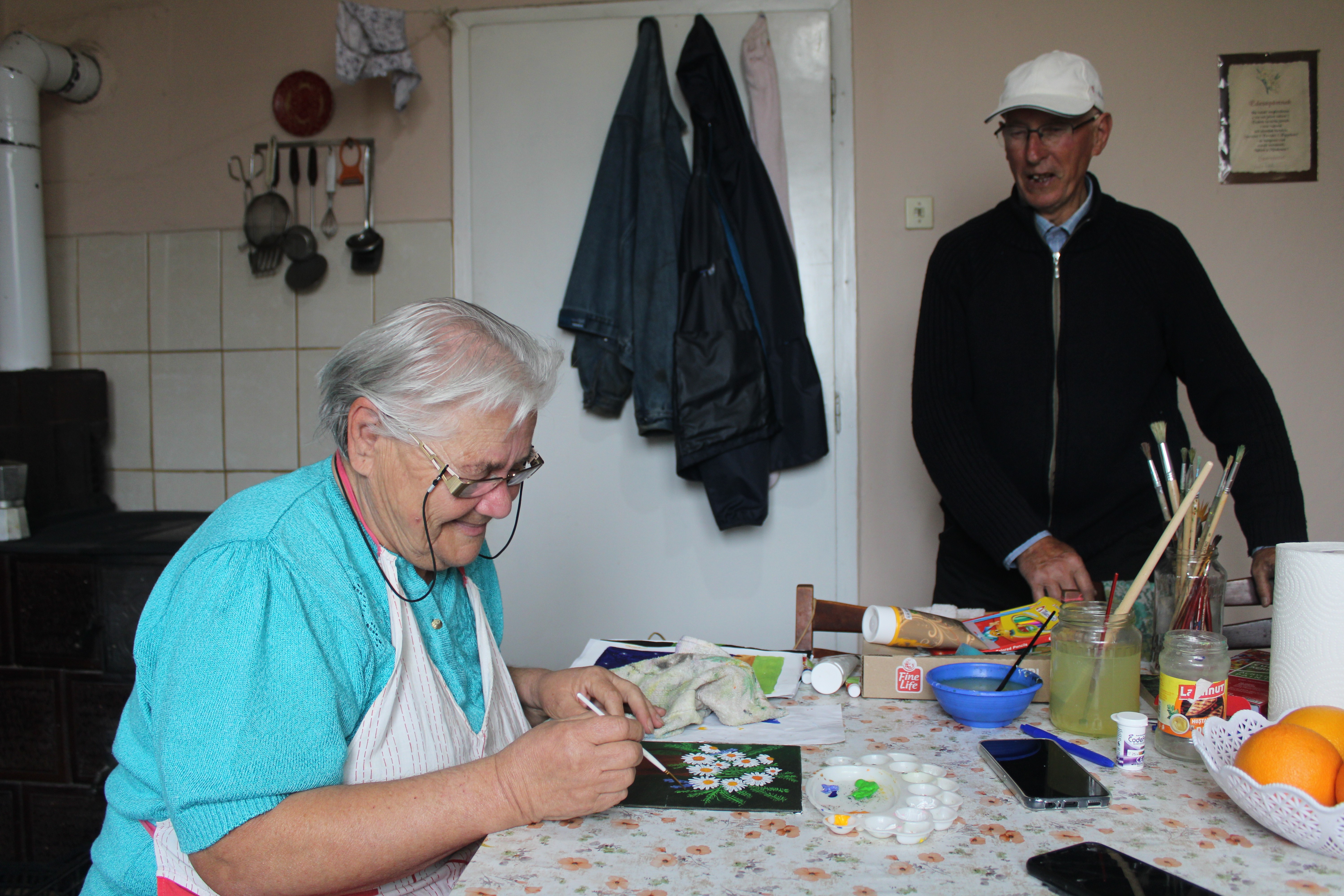 – Hosszú idő után itt kezdtem újra rajzolni, festeni, de aztán ez abbamaradt, mert egy helyi bőrfeldolgozó műhelyben vállaltunk munkát a férjemmel együtt, cipőfelsőrészeket készítettünk – fűzi tovább a történetszálat az idős asszony. – Addig dolgoztam ott, amíg a magas vérnyomásom és a cukorbetegségem miatt betegnyugdíjaztak. 2019-ben jött az első agyvérzés, 2020-ban a második. Ezután tértem ismét vissza a rajzlaphoz és a ceruzához, ecsethez, hogy valamivel lefoglaljam magam. Hálát adok a Jóistennek, hogy egyáltalán fel tudok még állni, meg tudok főzni egy kicsi ebédet. Ha van időm, napi két-három órát rajzolok, festek. Ez az, ami igazán megnyugtat.