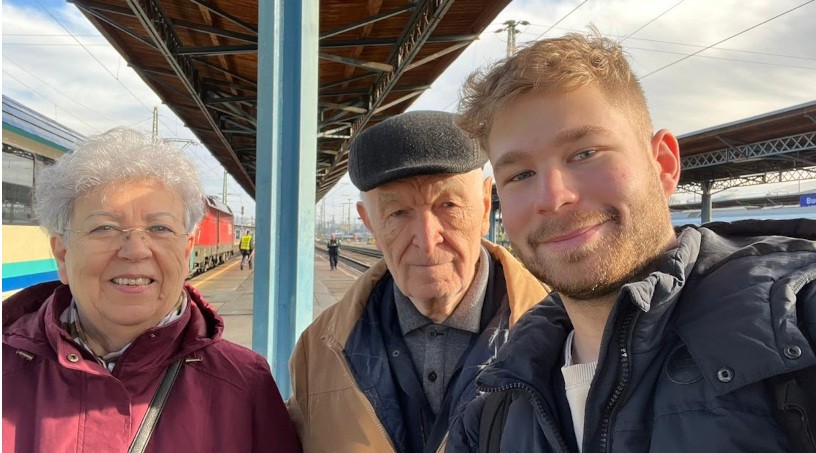 Virág Vera, Virág György és 20 éves unokájuk, Pollock Róbert Zoltán Budapesten a Keleti pályaudvaron