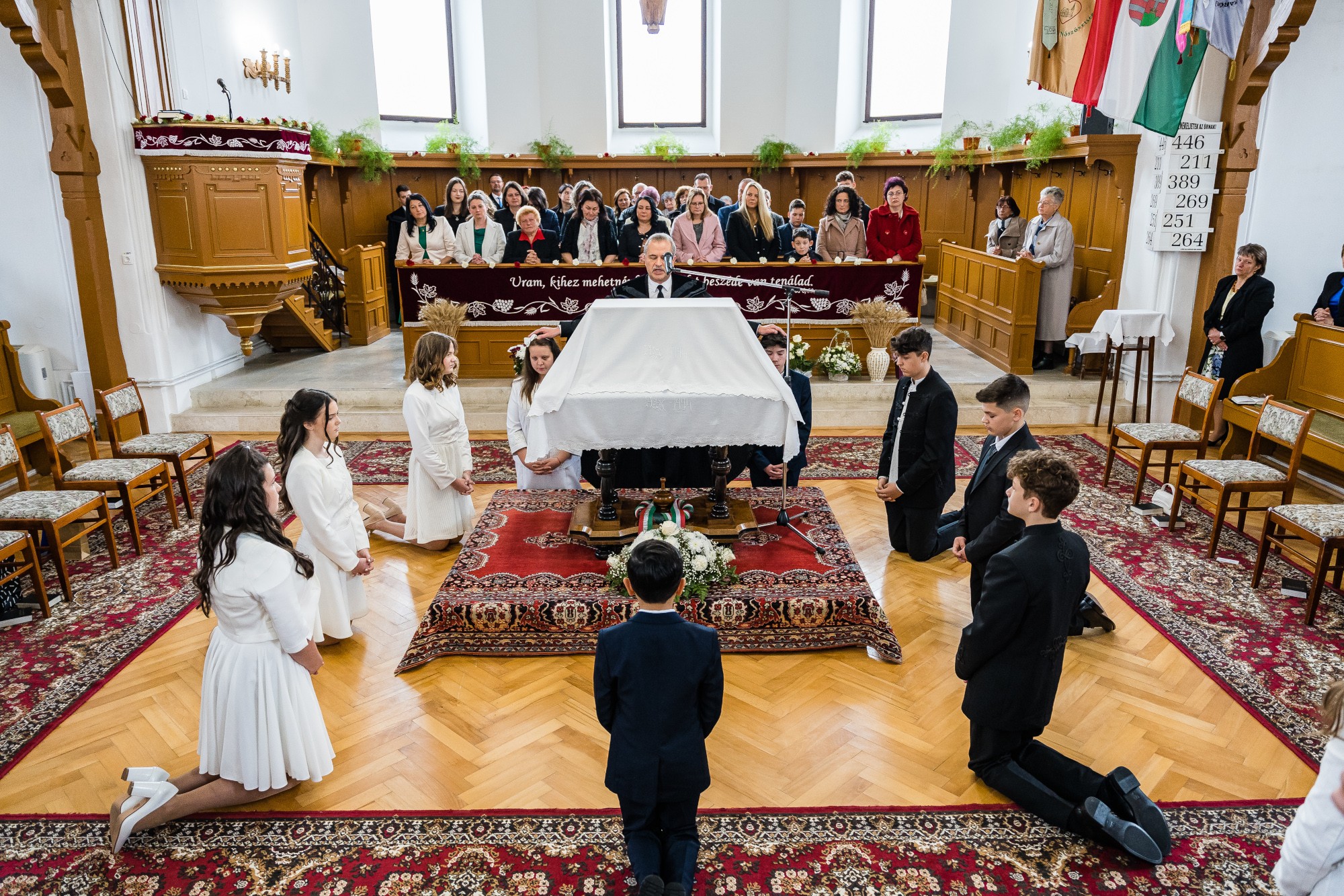 – Sok helyen – főleg Marosvásárhelyen – áttértek a hároméves felkészítő időszakra, és így kilencedikes korukban konfirmálnak az ifjak. A kánon követelése azonban, hogy az ifjak 14 éves korban konfirmáljanak, mi ehhez tartjuk magunkat. Konfirmáció előtt kétéves előkészítő van, hetente kétszer. Első évben többnyire egyszerűbb, közérthetőbb, egyházszervezettel kapcsolatos és bibliaismereti kérdéseket tanítunk. A nehezebb rész, a Heidelbergi káté marad a második évre. Abban reménykedünk, hogy az elhintett mag előbb-utóbb kikel. Nálunk virágvasárnap van a kikérdezés, az ünnepélyes fogadalomtétel, az ifjak megáldása és az úrvacsora. Az úrvacsorát az egész gyülekezetnek kiszolgáltattuk – magyarázta Czirmay Csaba Levente lelkipásztor.