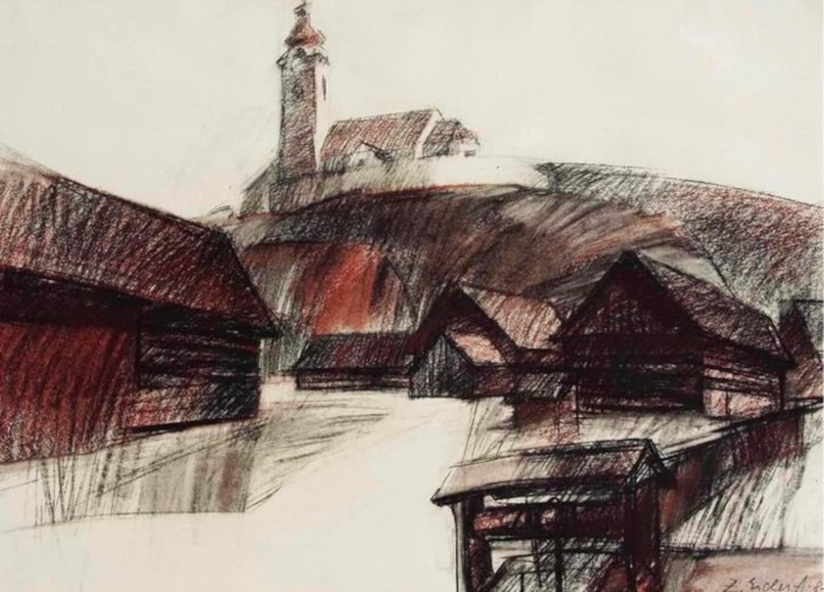 Idézem a cikkből: Z. Erdei Anna rajzain az emberi jelenlét tárgyi elemei (házak és tartozékaik) feszes, kemény vonalakkal írják bele magukat a fagyos idegenséget árasztó, zord tájba – vagy egyszerűen: a papír ellenséges fehérségébe. A fekete-fehér grafikai nyelv lapidáris szigora döbbenetesen hangsúlyozza az élesen körvonalazott, alig részletezett tájelemek rideg magukba zárkózását, a vázszerű, szikár fák csupaszságát és merev elkülönülését; az élet melegének hiánya, embertelennek érzett hidegség csap ki mindebből. Aztán más rajzokon – a művész legszemélyesebb, legmélyebben átgondolt, legemlékezetesebb alkotásai ezek – láthatjuk e némiképpen holdbéli hangulatú világ lakóját is: az embert. (…) mintegy a Semmibe emelve, valamilyen istenség górcsőve alá, egy névtelen sors megtestesítőjeként. (…)