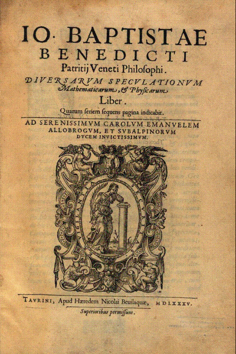 Giovani Battista Benedetti a fizika terén is maradandót alkotott. 1563 körül már gyanította, hogy légüres térben a különböző testek egyenlő sebességgel esnek. Fontos kiemelnünk a légüres teret, mert máskülönben számolnunk kell a zuhanó test és a levegő közötti ellenállással is. Továbbá Benedetti a centrifugális erőről is határozott véleményt fogalmazott meg, és tudta, hogy ha elengedünk egy körpályán forgatott testet, az az érintő irányába halad tovább. Sokak szerint Benedetti Galileo Galilei előfutárának tekinthető.