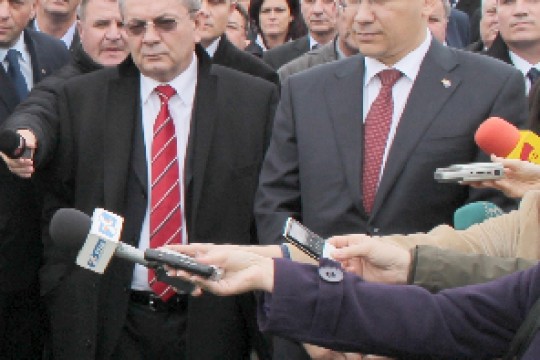 Victor Ponta kormányfő, államelnökjelölt, Liviu Dragnea kormányfő-helyettes, Ioan Rus szállításügyi...