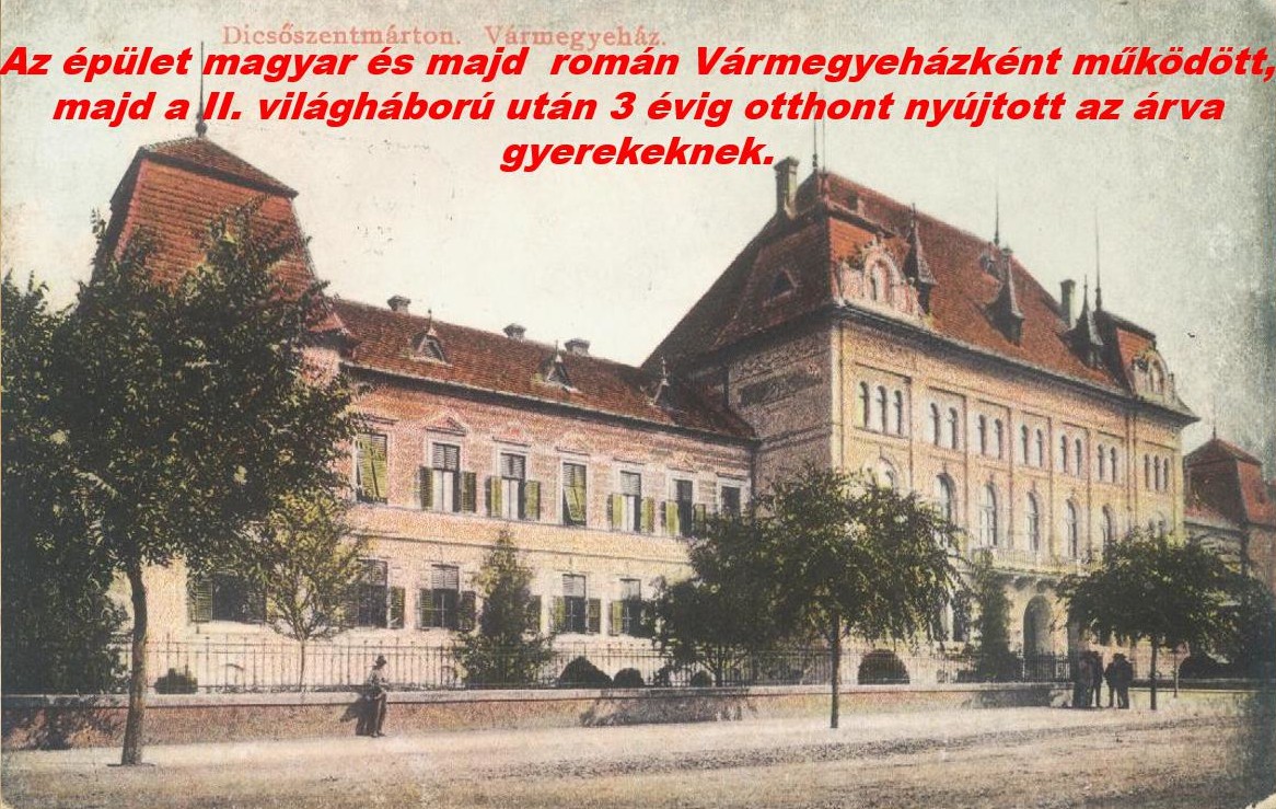 – A bemutatóink során megtapasztaltuk, hogy a város lakói közül nagyon kevesen ismerik az épület eredeti rendeltetését, rejtett titkait, az épület teljes hosszában kialakított pince eredeti funkcióját. A klasszicizáló és barokk stílusú épület a korabeli Erdély egyik legszebb vármegyeháza volt. Az 1870-es években végrehajtott vármegyerendezés során Dicsõszentmárton közigazgatási központ, Kis-Küküllõ vármegye székhelye lett. Ebben az idõszakban fontos létesítmények épültek, a közigazgatási és a polgári élet intézményei: kaszinó, polgári iskola és megyei kórház. 1890-ben elkészült a monumentális megyeháza. Az épület egyik érdekessége, hogy ablakainak száma megegyezik az év napjainak számával, a termek száma pedig az év heteinek számával (52).