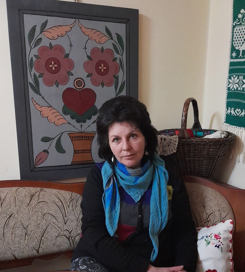 – Az egész egy általam szervezett községi népdalvetélkedővel kezdődött. Szerettem volna olyan díjakat kiosztani, amelyek kapcsolódnak a néphagyományokhoz, a népi kézművességhez, ezért rendeltem Horváth Sándor helyi asztalostól jó néhány fatáblát, s némi motívumfelkutatás után kipingáltam őket. Akkor azt hittem, hogy nagyon jól. Két év múlva Válaszúton, egy Bolyai Nyári Akadémia keretén belül kezdtem el megismerni az igazi bútorfestést az udvarhelyi Szász Margit irányításával, s egyre nagyobb kedvet kaptam hozzá. Amikor a Kallós Zoltán Alapítvány egy bútorfestő tanfolyamot hirdetett meg, azonnal jelentkeztem. A Hagyományok Házánál dolgozó Ament Éva oktatott minket, és lassan rálátást nyertünk az erdélyi táj-egységek motívumvilágára. Festett templomkazettákkal is foglalkoztunk, sőt Válaszúton az egyik tanterembe (amely néha fazekas- meg bútorfestő teremként funkcionál) a tavaly nyáron kazettákat festettünk, amelyek azóta a mennyezeten vannak. Csupán az ünnepélyes átadás maradt el a pandémia miatt. Azóta szívesen látogatom a festett kazettás templomokat, amelyek annyira magasztosak, meghatóak és gyönyörűek, felemelő érzés állni és bámulni őket. Úgy érzem, szívesen lennék vagy lettem volna bútorfestő, ha idejében megismerkedem ezzel a mesterséggel. Ezért tartanám nagyon fontosnak, hogy az iskolákban a rajz- meg a technológiaórákon szenteljünk nagyobb figyelmet a népi kézművesség értékeinek megismertetésére, hiszen a jó kézügyességű gyermekeknek lehetőséget tudnánk nyújtani a kibontakozásra. Jelenleg a legtöbb kézművesünk autodidakta módon tanul, nincsenek szakembereink, akik felvilágosítanák őket. Remélem, hogy a Hagyományok Házának több városban megjelenő kirendeltségei segítségével lehetőség lesz igazi mestereket nevelni. Hogy meg tudjuk különböztetni a szépet a csúnyától, az igazit a giccstől, és utat tudjunk mutatni a következő generációknak. Jó lenne népművészeti szakiskolákra is gondolni.
