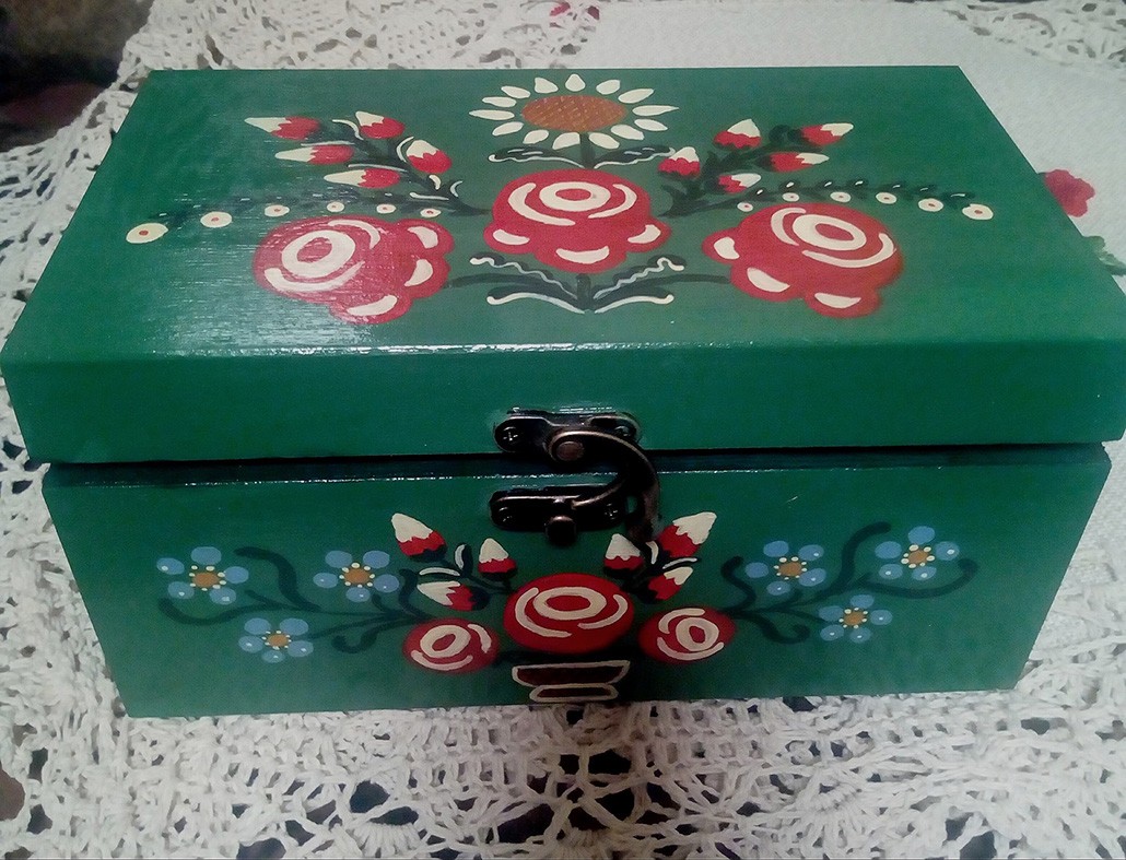 – Köztudott, hogy bútorfestéssel is foglalkozol, népi motívumokkal díszítesz régi tárgyakat. Mióta csinálod, kitől tanultad a bútorok díszítését?