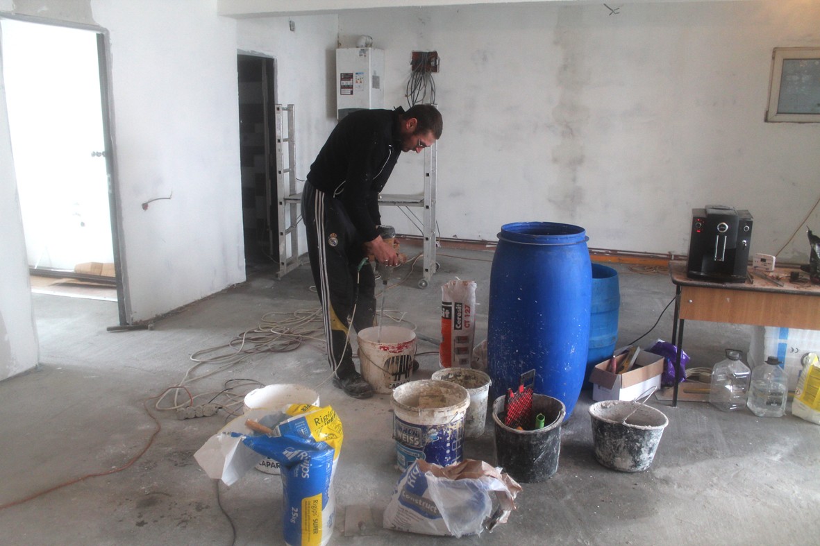Moldovanék rekordsebességgel építették újjá az ingatlan tetőzetét, múlt heti látogatásunkkor már a belső munkálatok zajlottak.