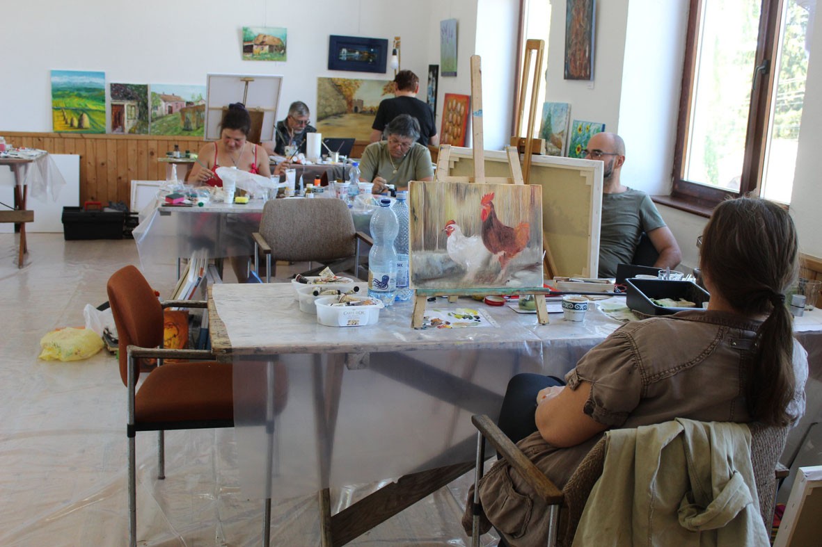 – A szépnek és jónak olyan hitvallásával találkozunk a kiállított képeken, amiből biztatást, reménységet meríthetünk. Valaminek kellett lennie a háttérben, bizonyos tényezőknek teljesülniük kellett, hogy ezek a szép alkotások megszülethettek. Tizennégy művész dolgozott a táborban, akik különböző helyekről érkeztek – a háború sújtotta Ukrajnából is –, különböző élettörténetekkel, szakmai képzéssel és művészi tapasztalattal, akik önmaguk legjavát hozták, adták. Az Istentől kapott talentum mindannyiunkban ott szunnyad, valamit meg akarunk mutatni a világnak a mindennapi munkával vagy a művészi alkotással. Amit teszünk, abban benne van a szívünk, az értelmünk, a hitünk, az érzéseink, a vágyaink. A művészet esetében ez fokozottan érvényes. Az alkotás folyamatához inspiráció, ösztönző légkör, belső rezdülés, vívódás, küzdelem és fáradtságos munka szükséges. És kell a lehetőség, a tábor adta feltételek és az isteni áldás. Mindez adott volt az elmúlt héten, ami tetten érhető a festményeken, rajzokon – fogalmazott