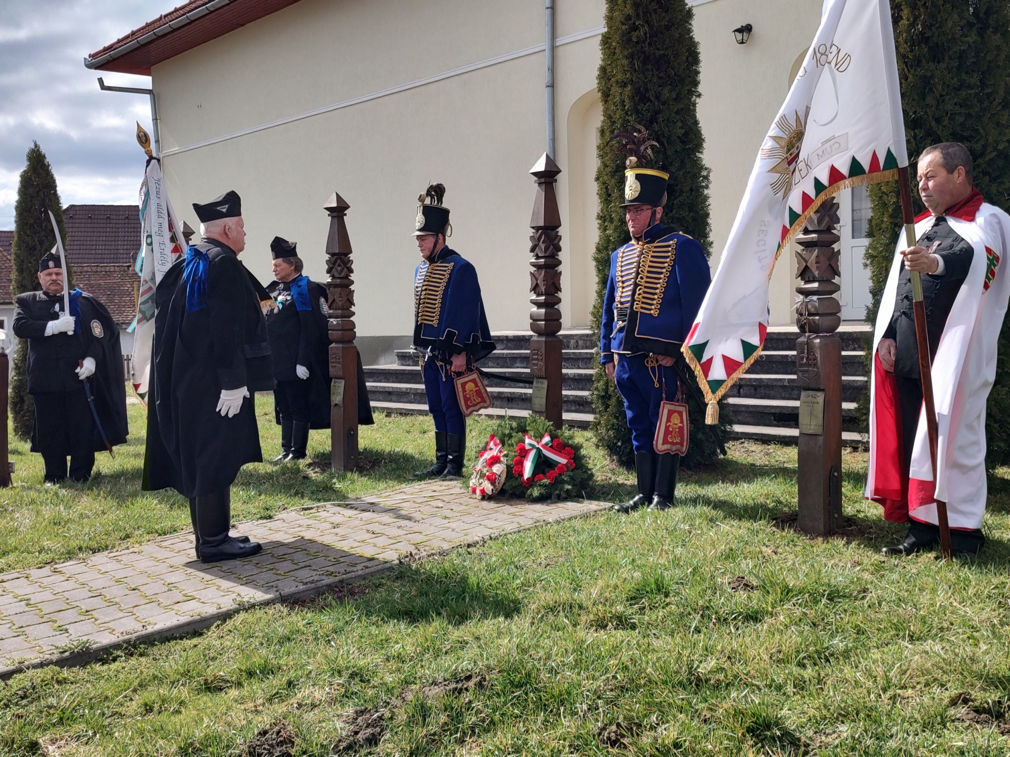 Ezt követően az ünneplők átvonultak a művelődési otthon elé, ahol a tizenhárom aradi vértanú emlékére állított kopjafáknál koszorúzott a Szent László Társaság (1861) és Rend, a Történelmi Vitézi Rend szovátai-sóvidéki állománya, a község önkormányzata, a történelmi magyar felekezetek és az erdélyi magyar politikai pártok helyi és községi képviseletei.